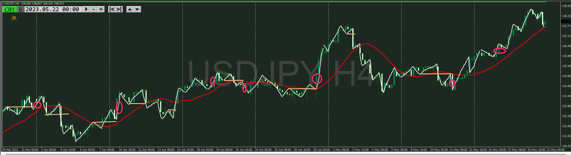 【4時間】方向上 トレンド転換シグナルが出たところ