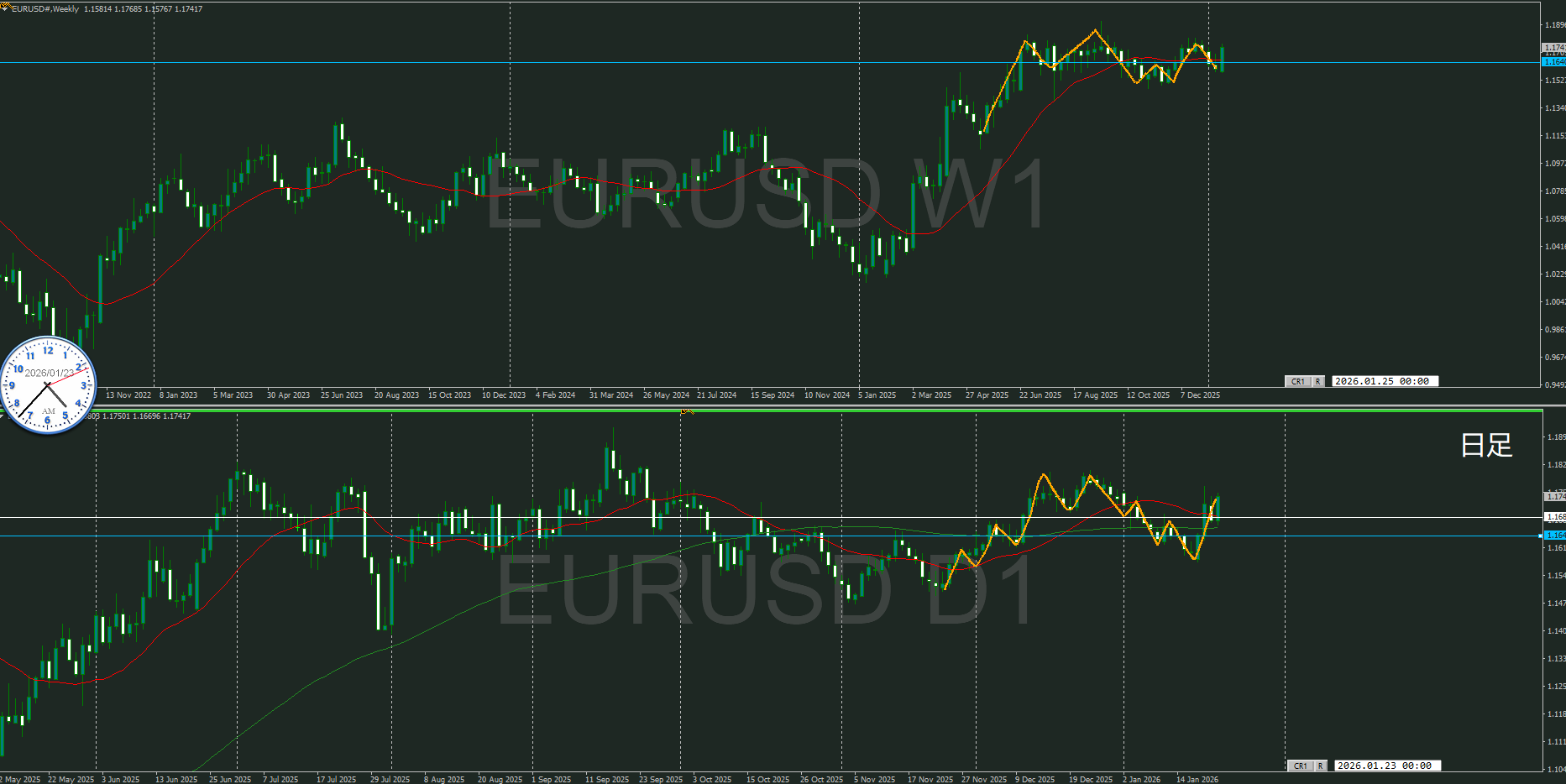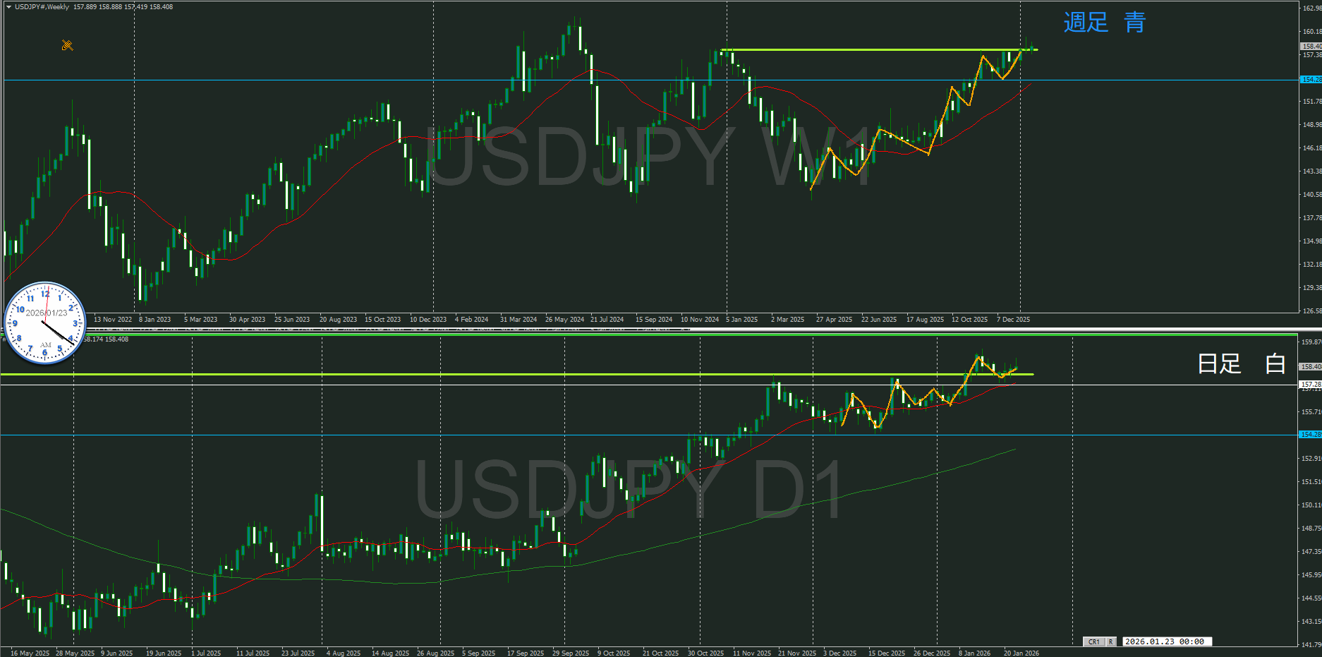 上位足、週足がどうなるのか気になる