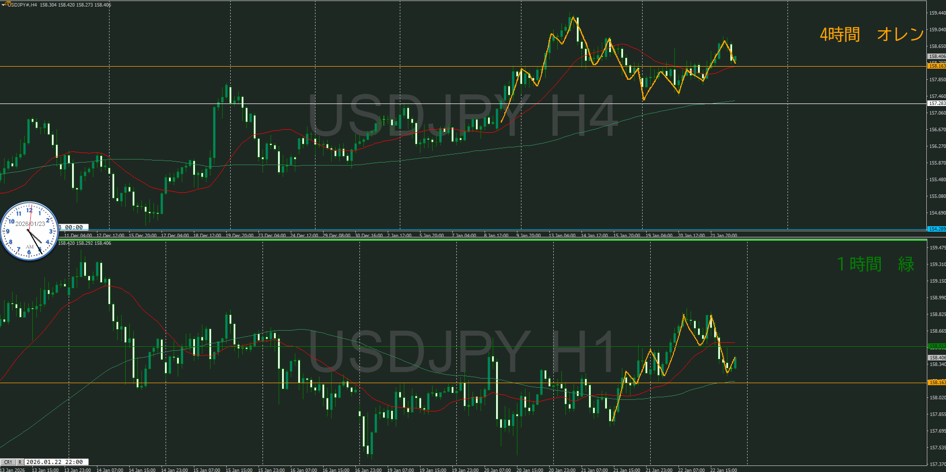 ドル円 4時間 押し目買い 〇 ヽ(´ー`)ノ
