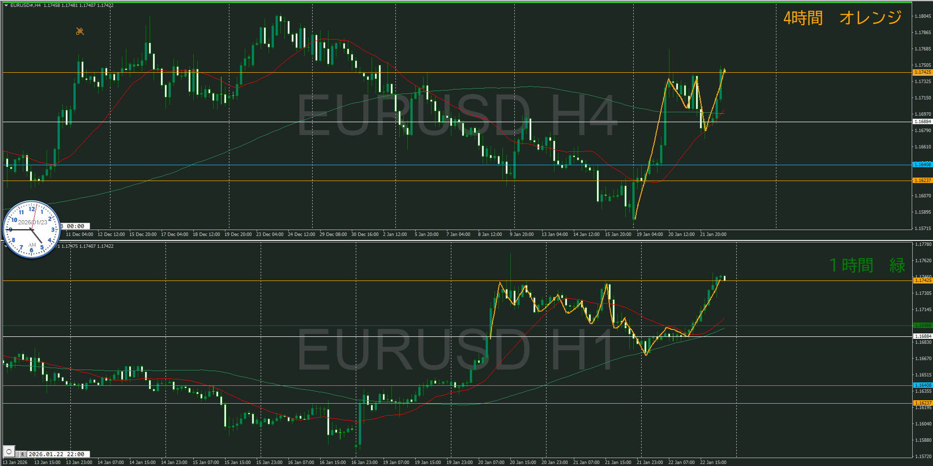 4時間と同じカウントなんだけど、何処かで安値を切り上げていると思う