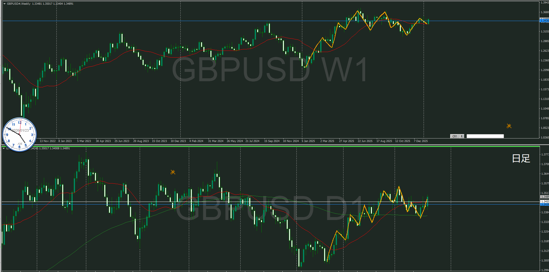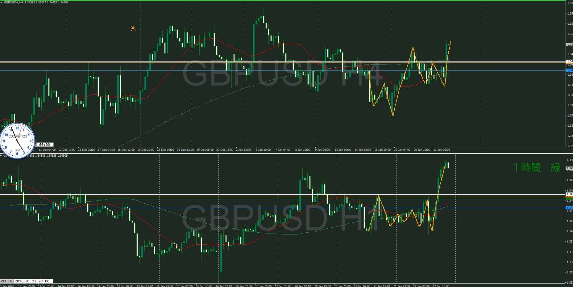 オレンジのラインが押し目買いが入り易いのかは、MAとの関係で微妙