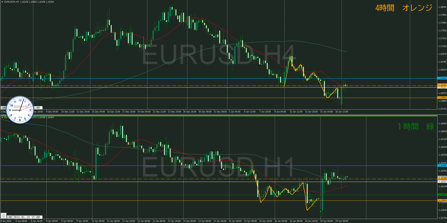 【1時間】方向上 全戻しから再度上昇したが戻されている状況