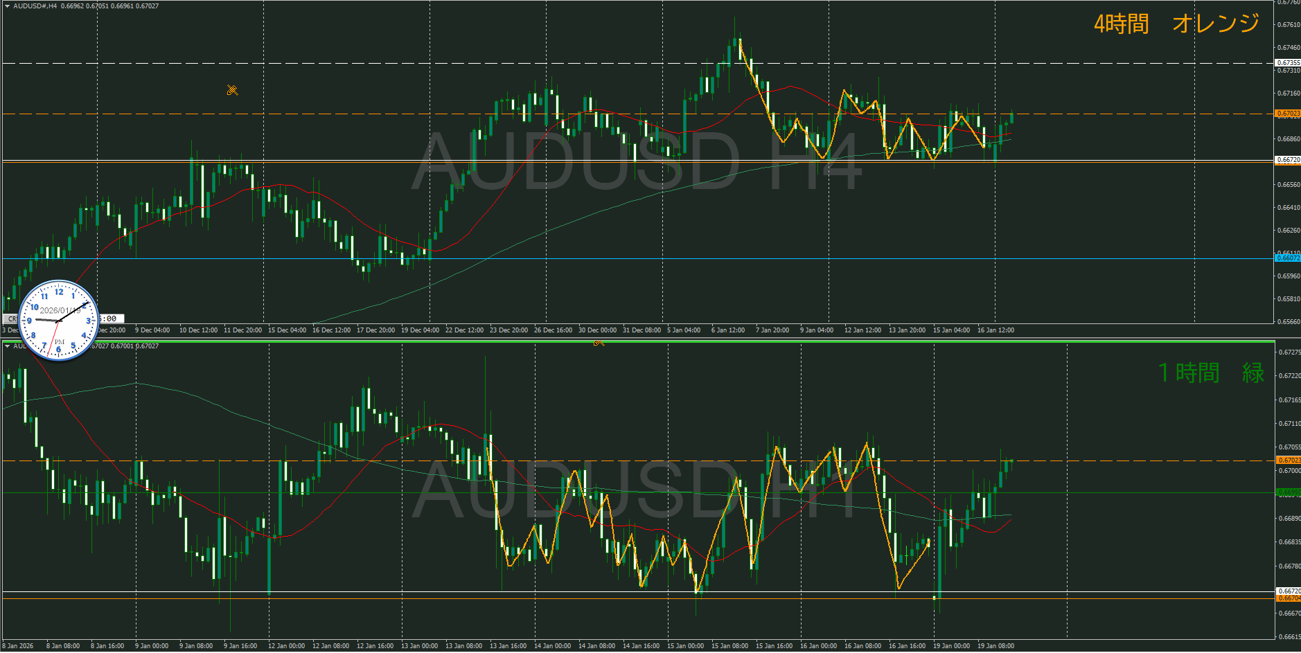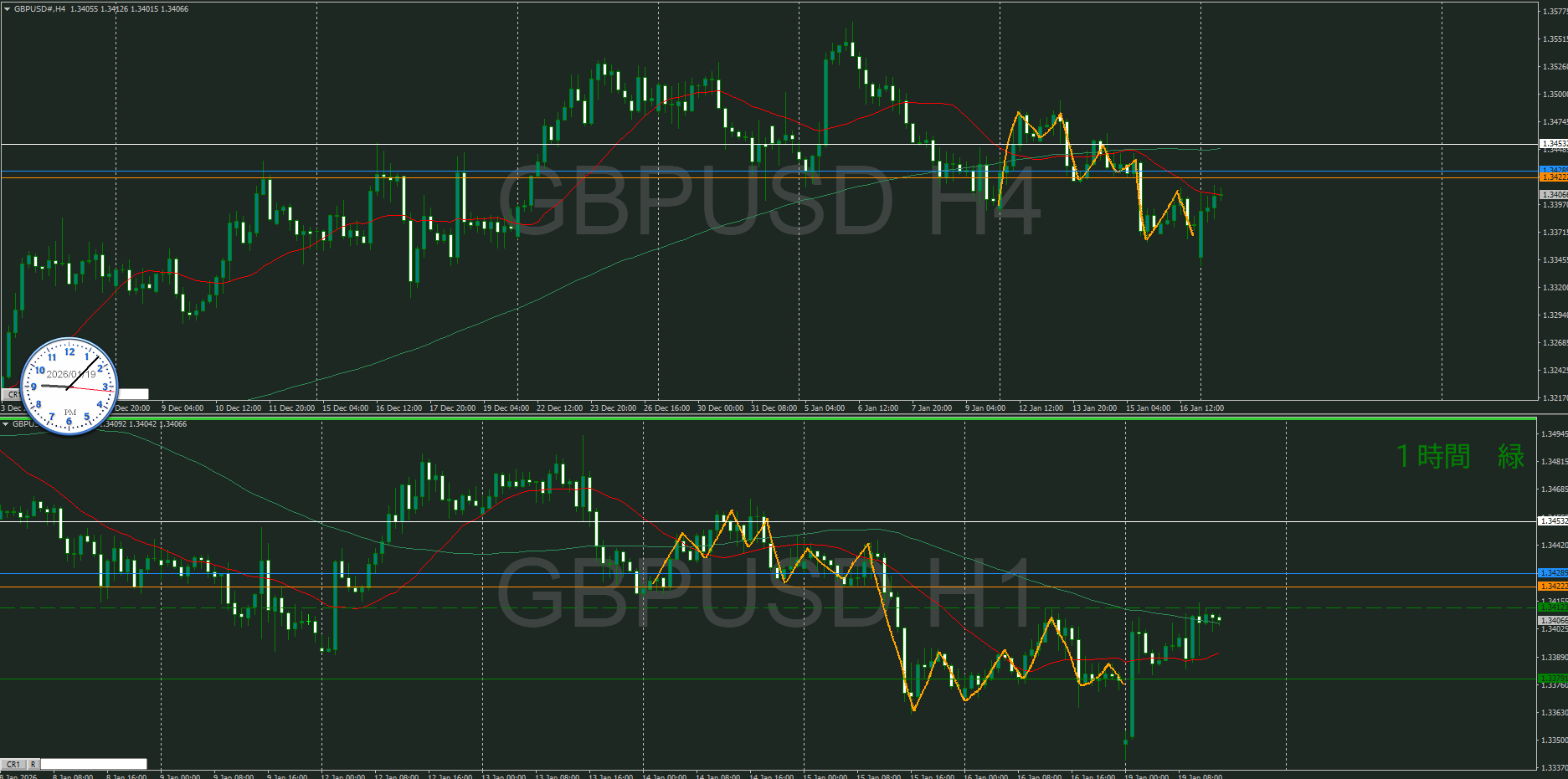 MAは、ほぼ水平だけどレートの上にいて売り抑えとして機能し易い