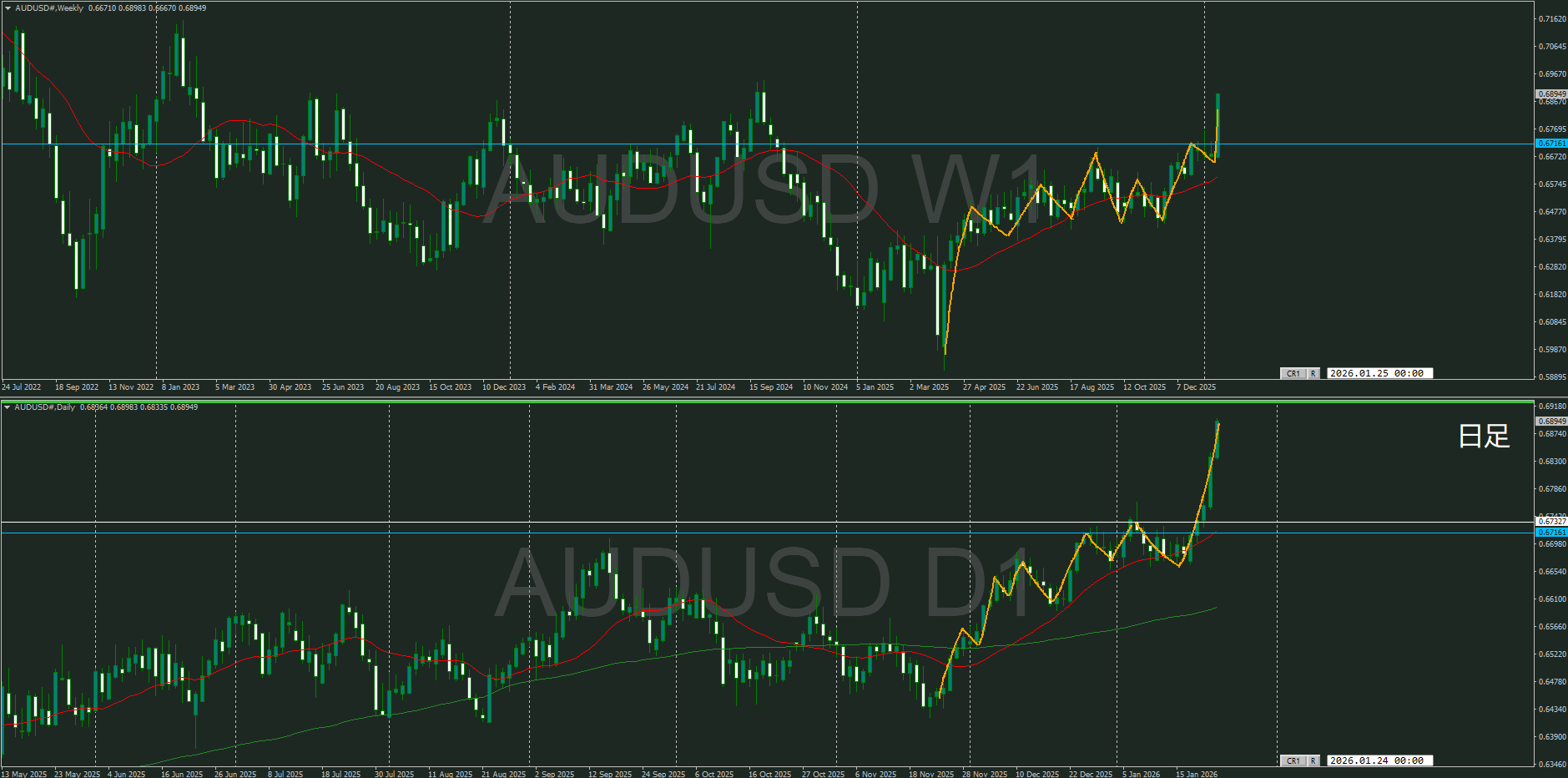 【日足】方向上 上昇の波の途中