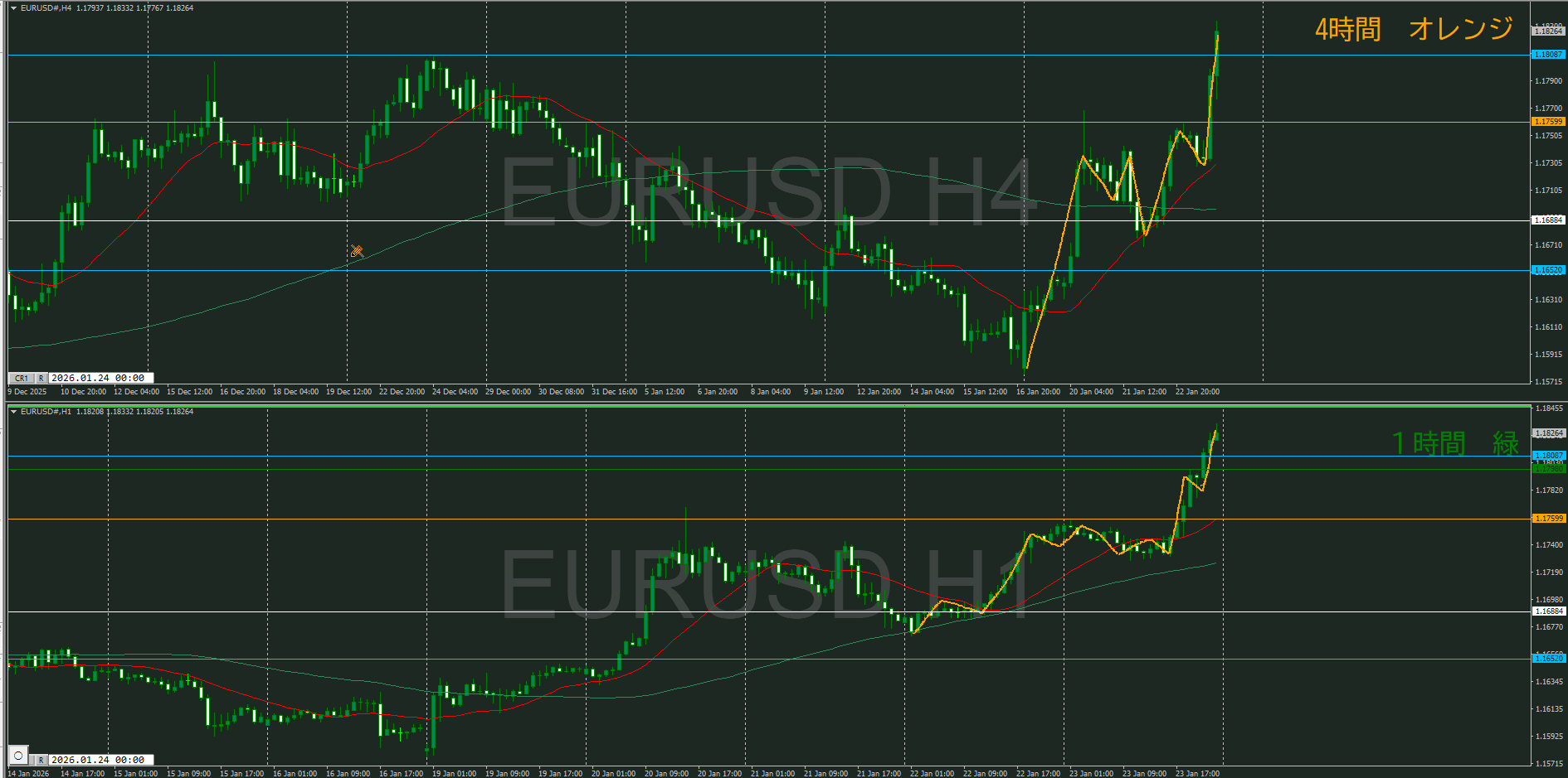 【1時間】方向上 上昇の波の途中