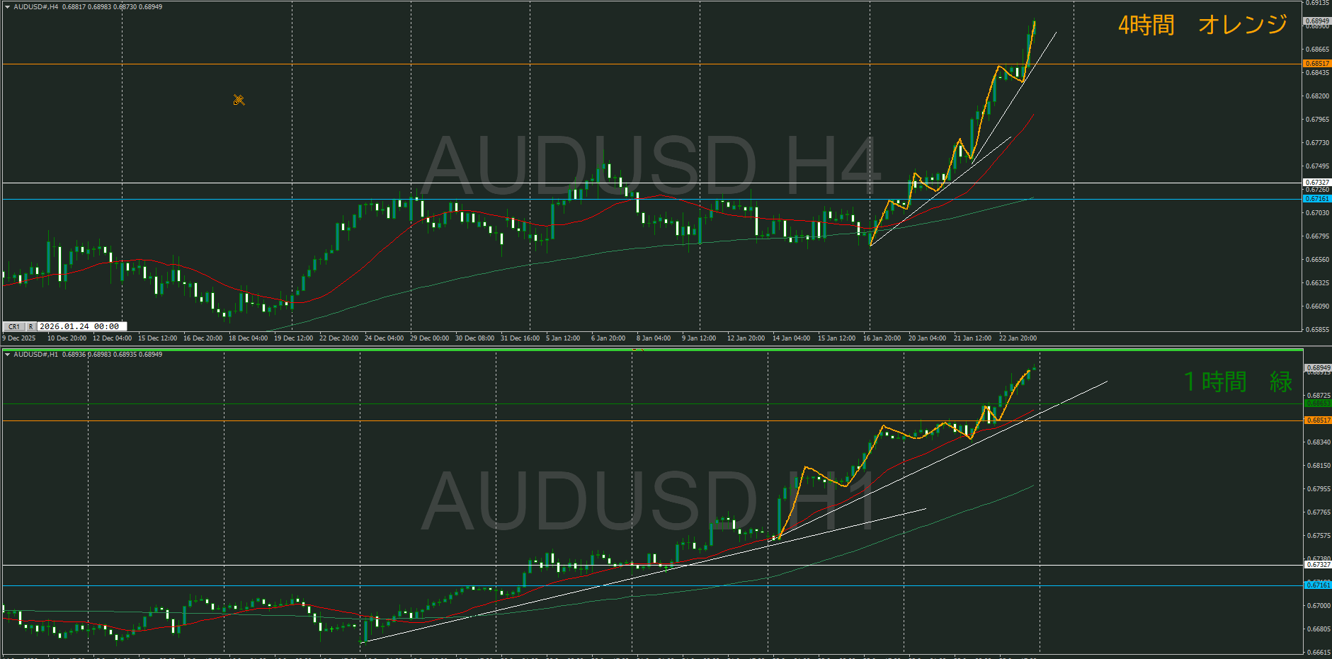 オレンジのラインが押し目買い勢力が現れ易い候補