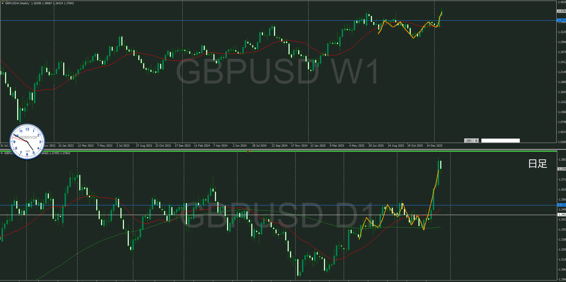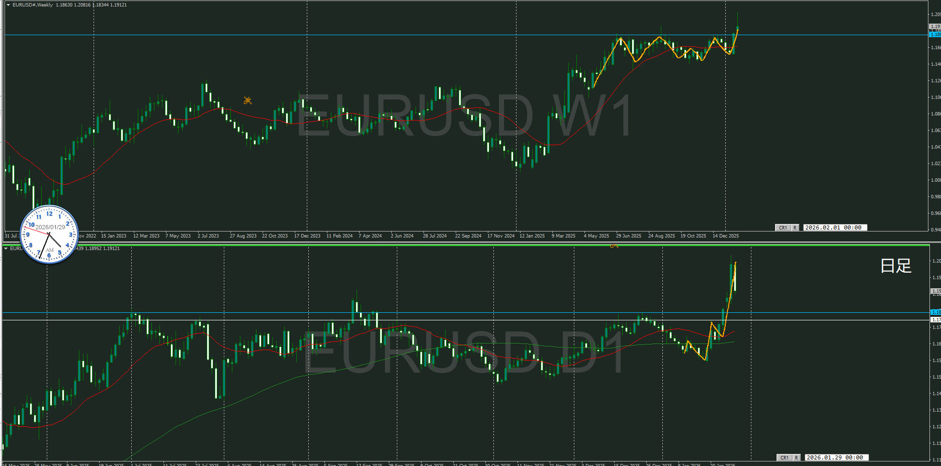 MAはレートの中の潜っているので、買支えや売り抑えとして機能する状況ではない