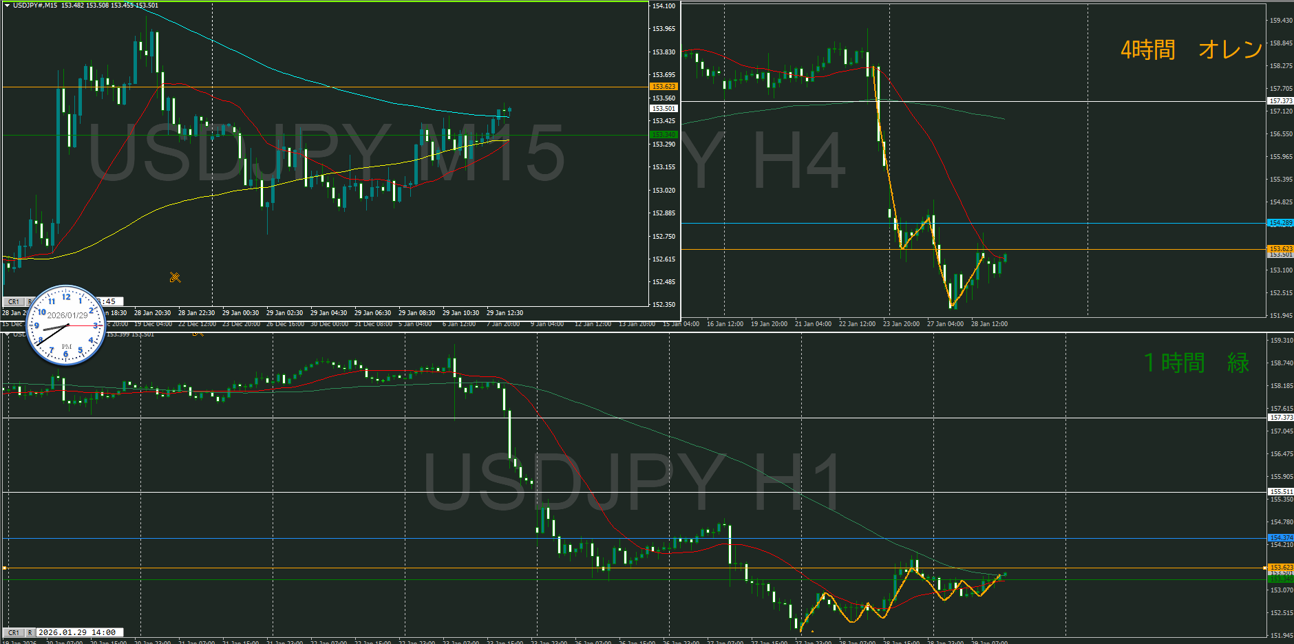 1時間と15分のMAは上向きで4時間が水平になりつつある
