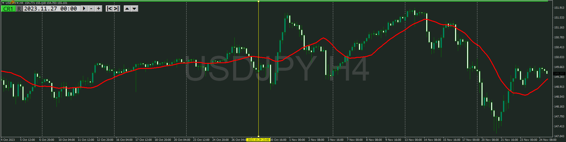 1時間のトレンド発生を待つと4時間の安値がリスクになる