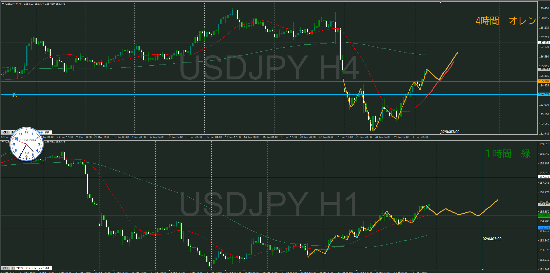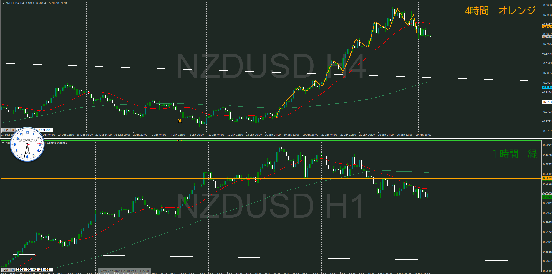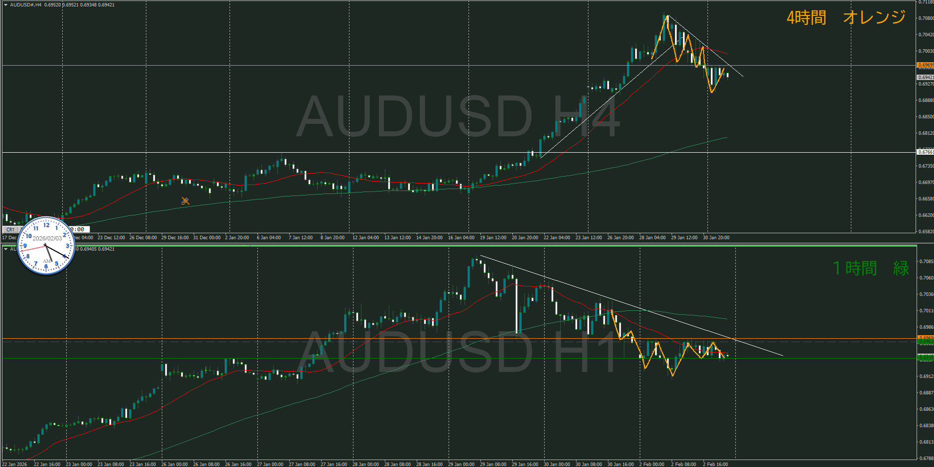 方向は同じだけど、実質的に週足VS日足状態と思う