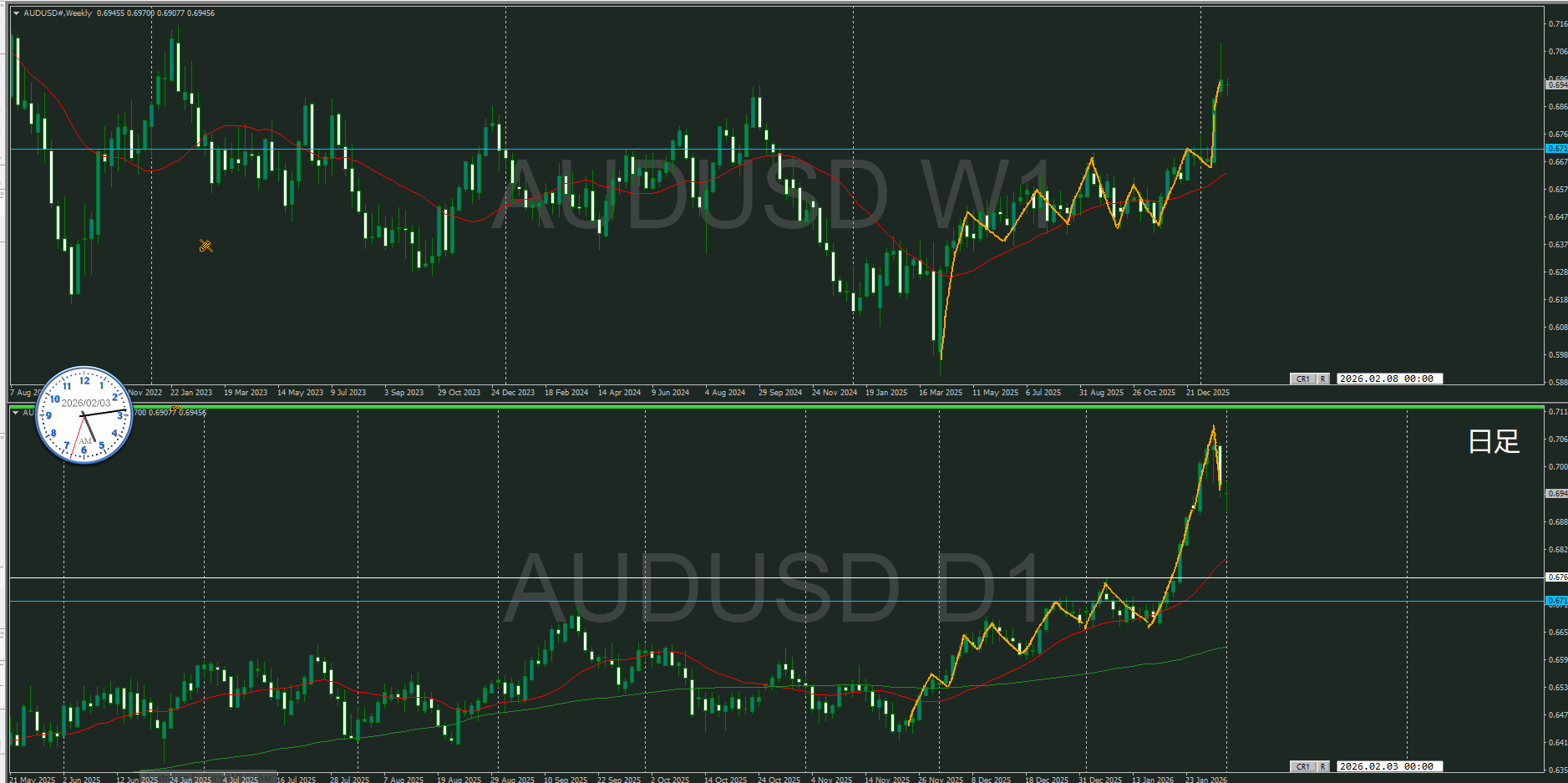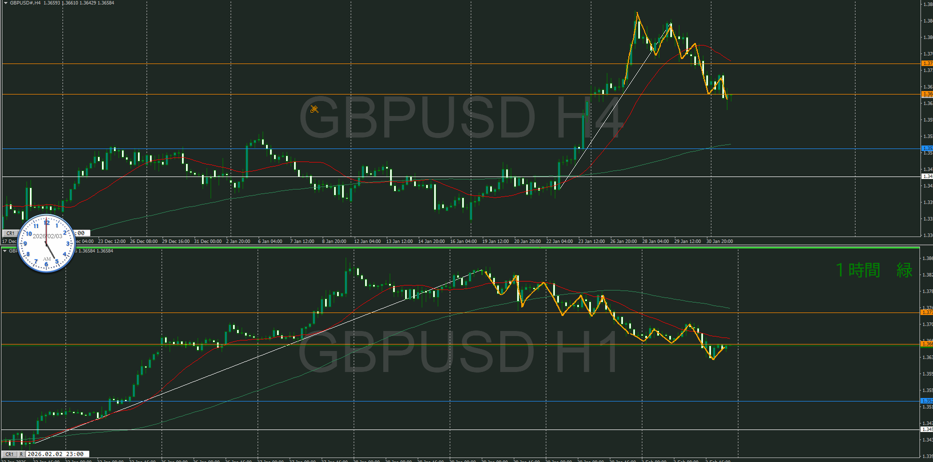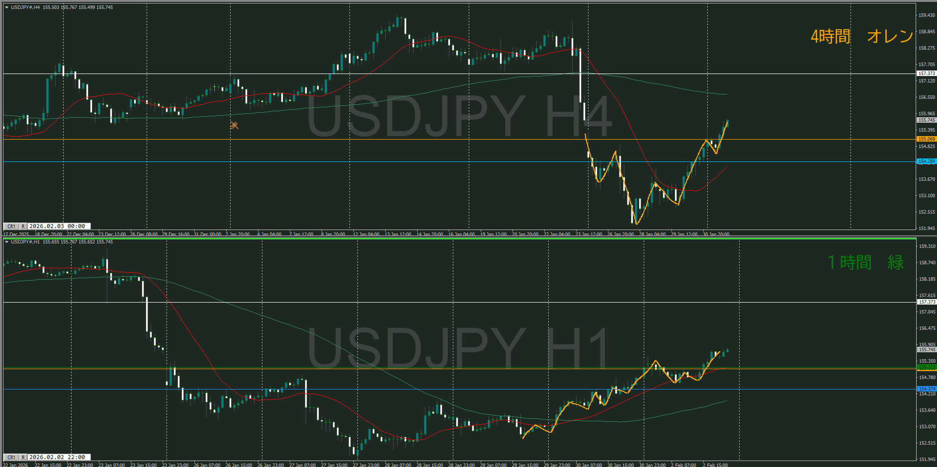 方向は同じだけど、実質的に週足VS日足状態と思う