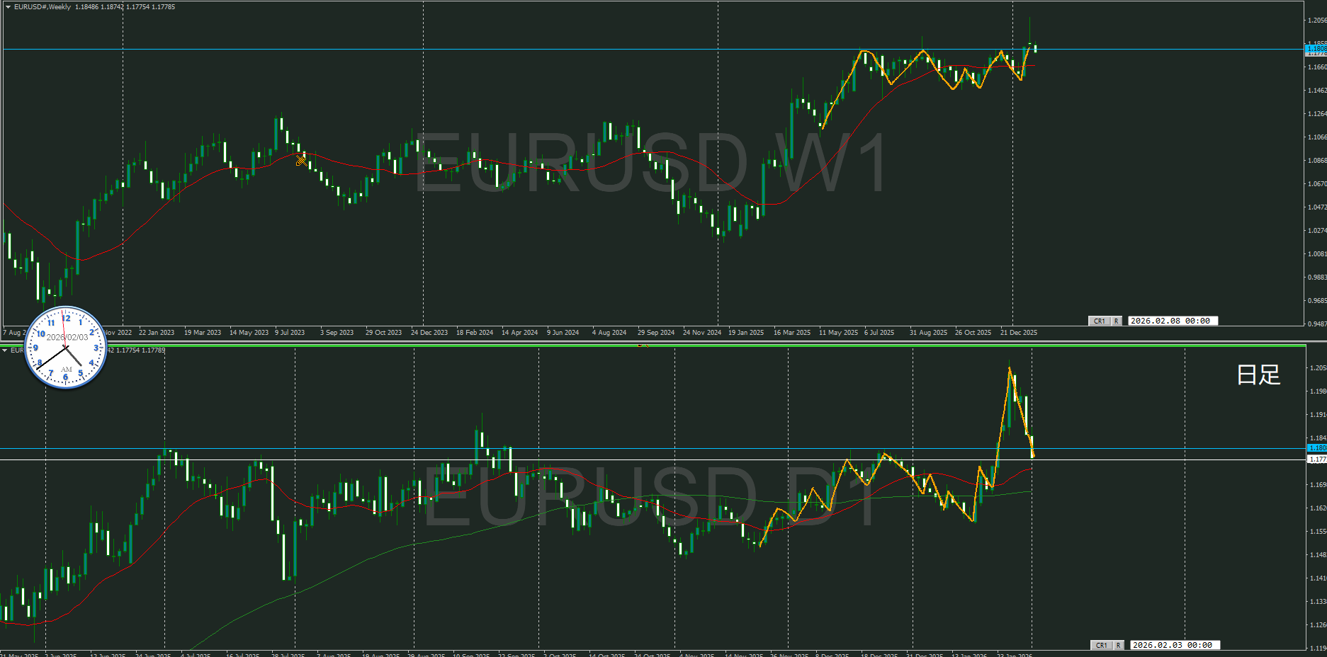 週足と日足が戦ているので、どうなるのかを視ていく