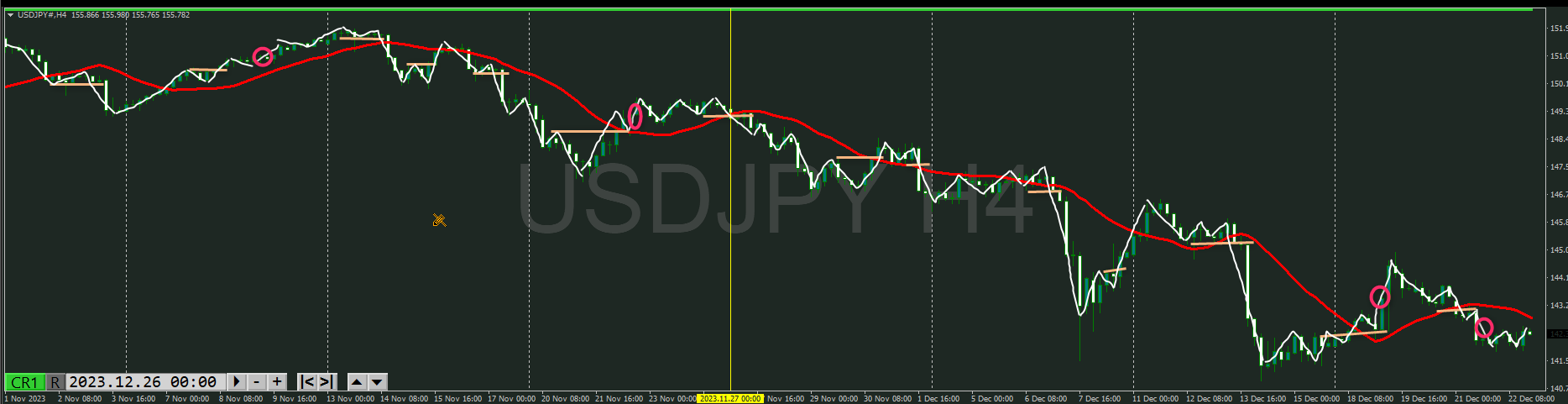 【4時間】方向上 トレンド転換シグナルが出たところ