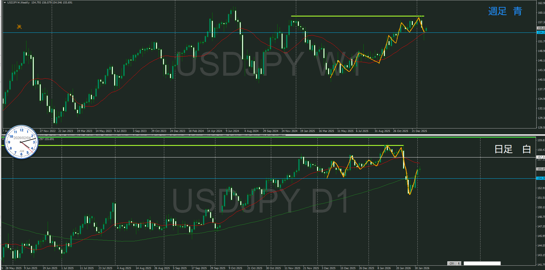 方向だけは同じだけど、日足が押しているので目線は違う