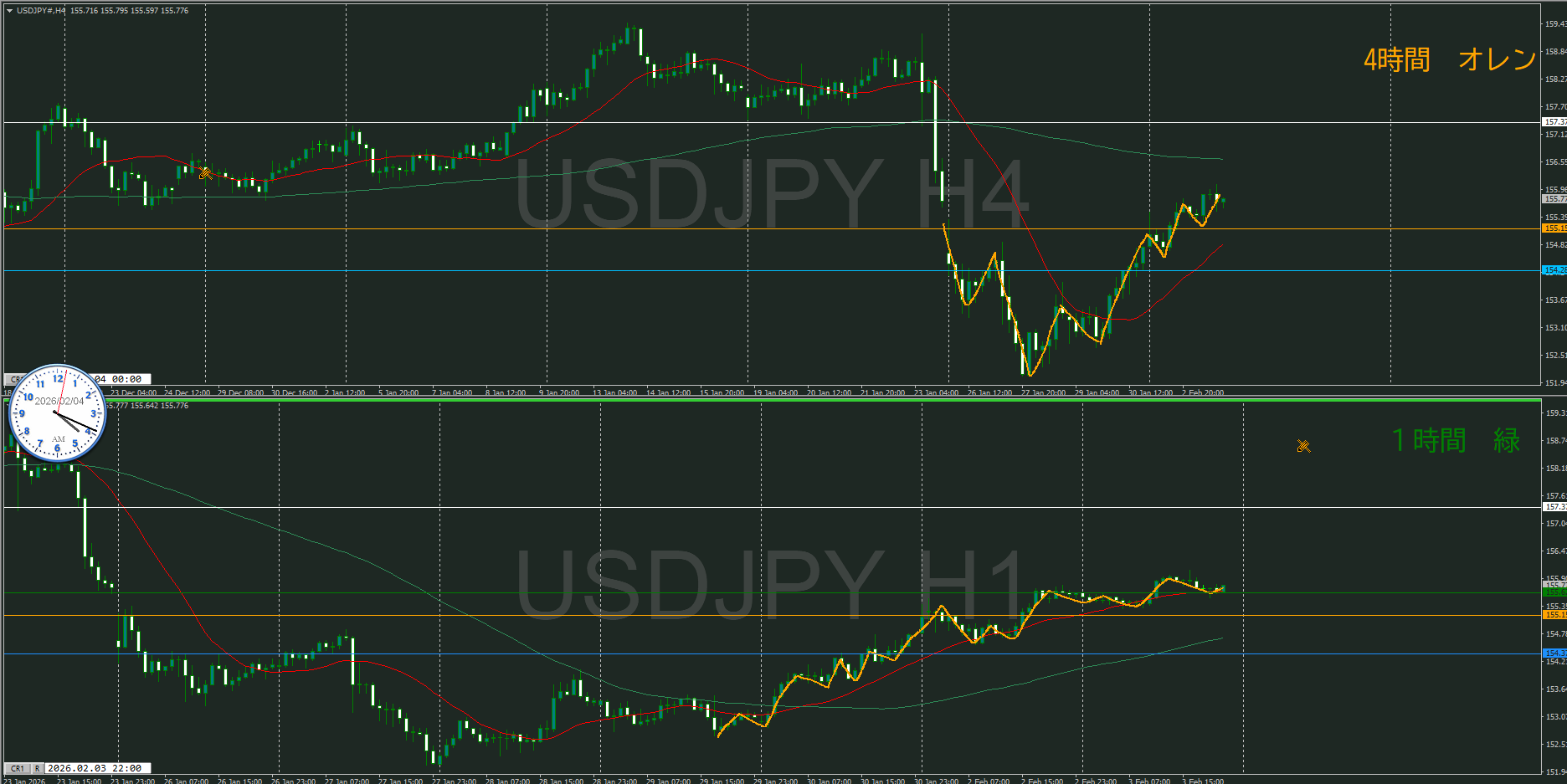 4時間で高値が止められるのか、更に更新してくるのか