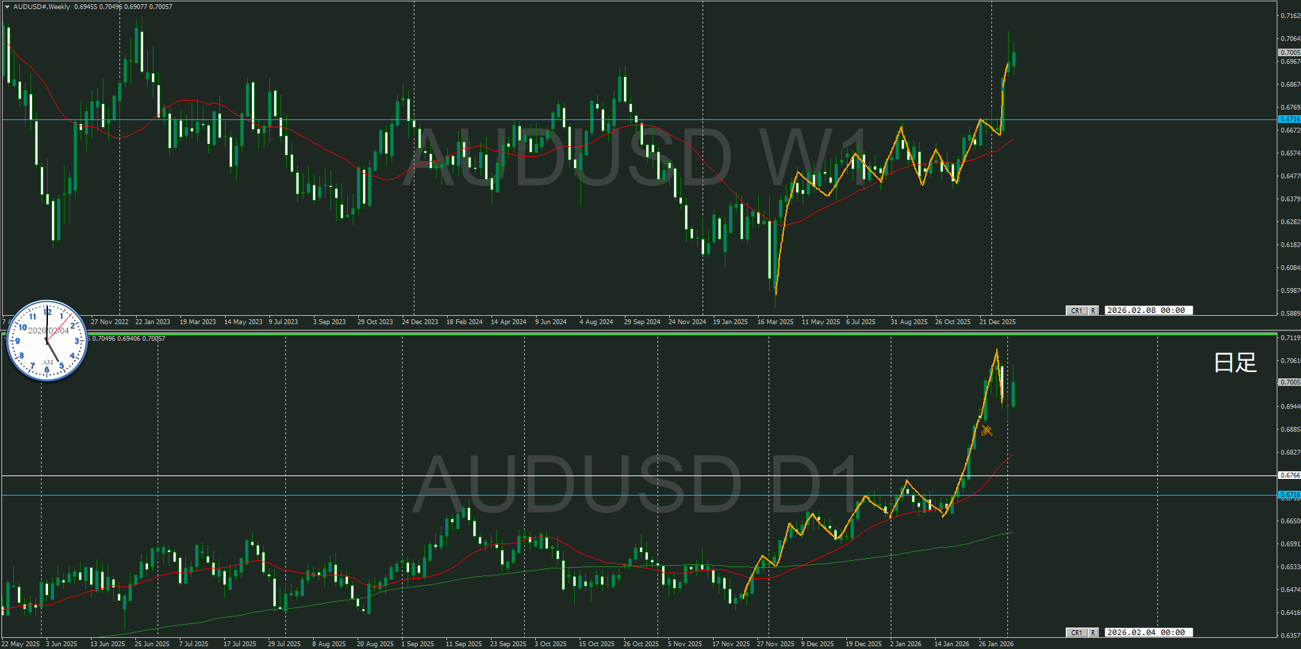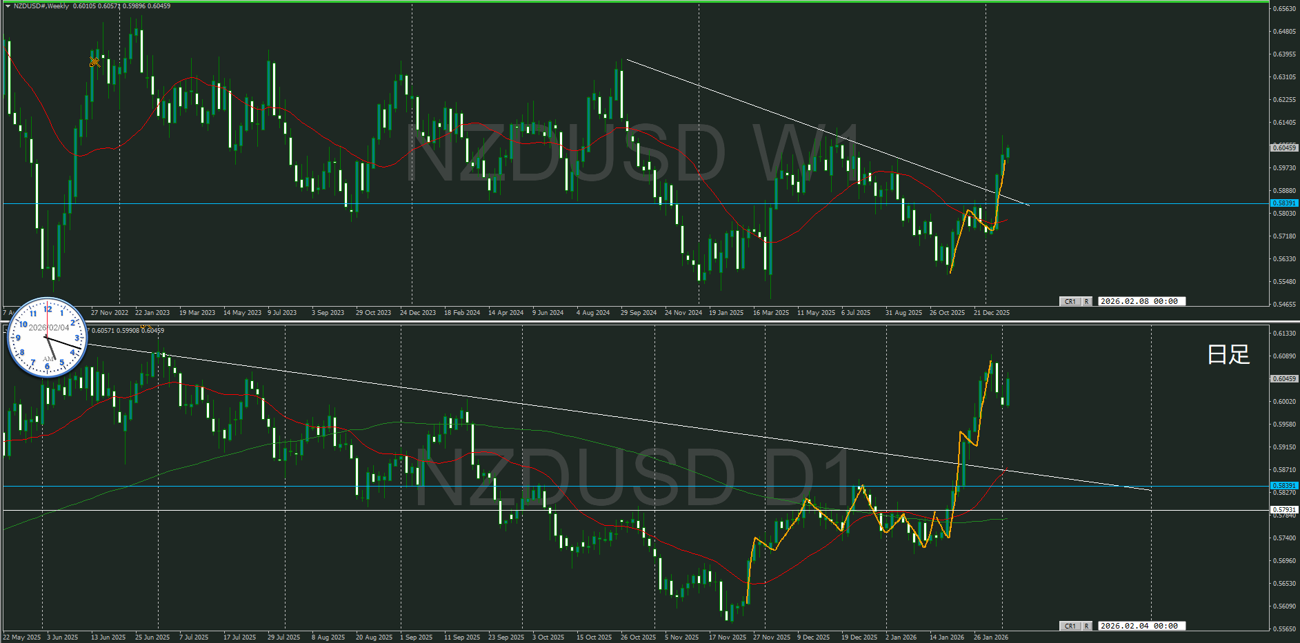 一応同じ方向だけど、今は日足が押している状況