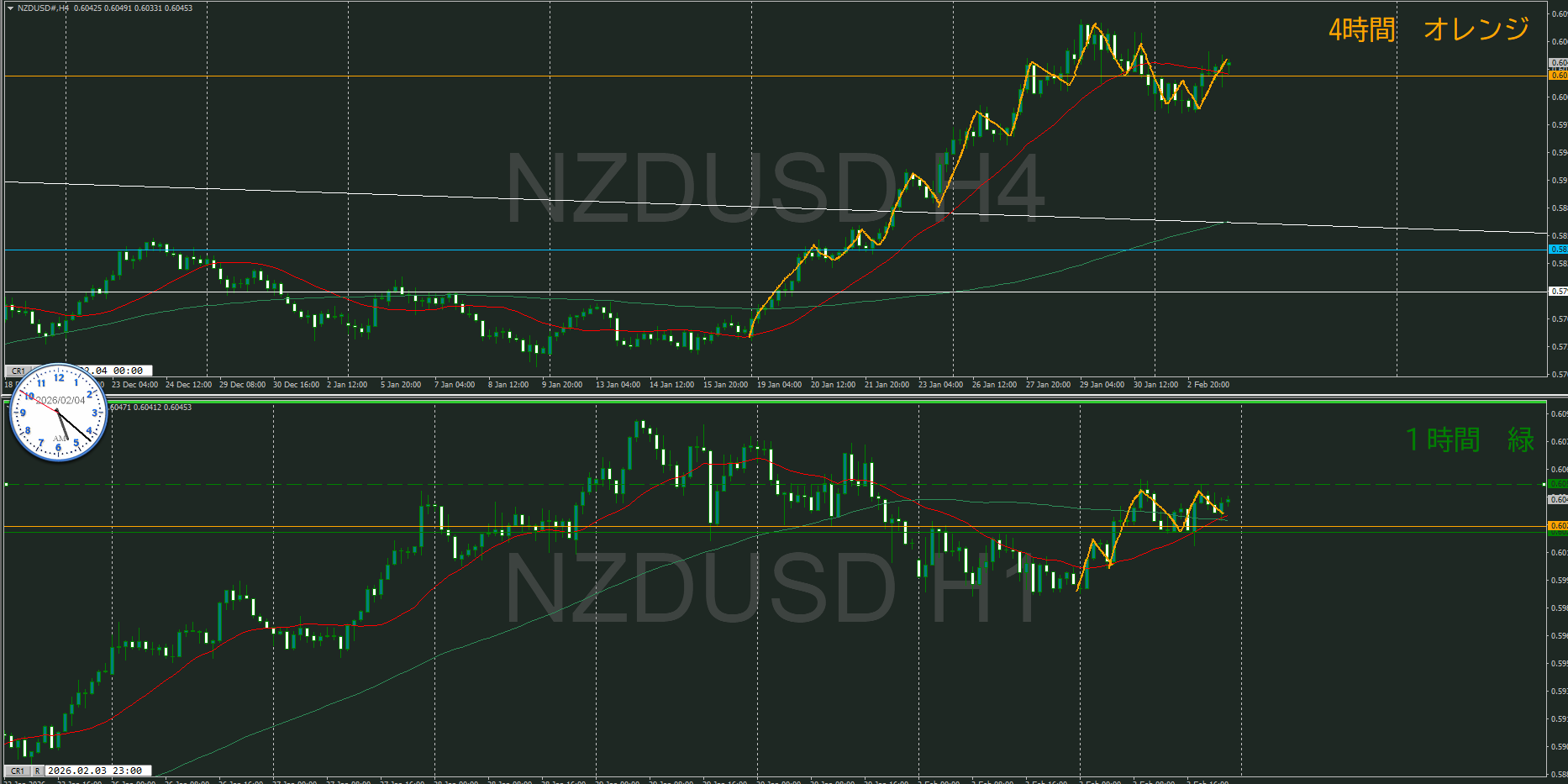 【4時間】方向上 小さいけど押しを付けたと視て上昇の波の途中