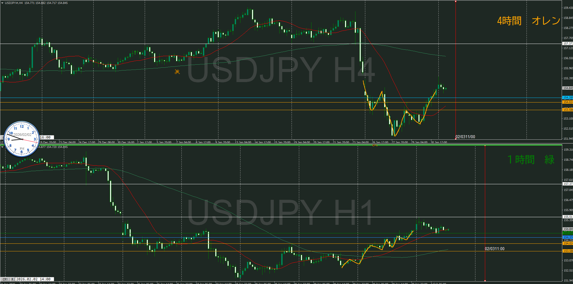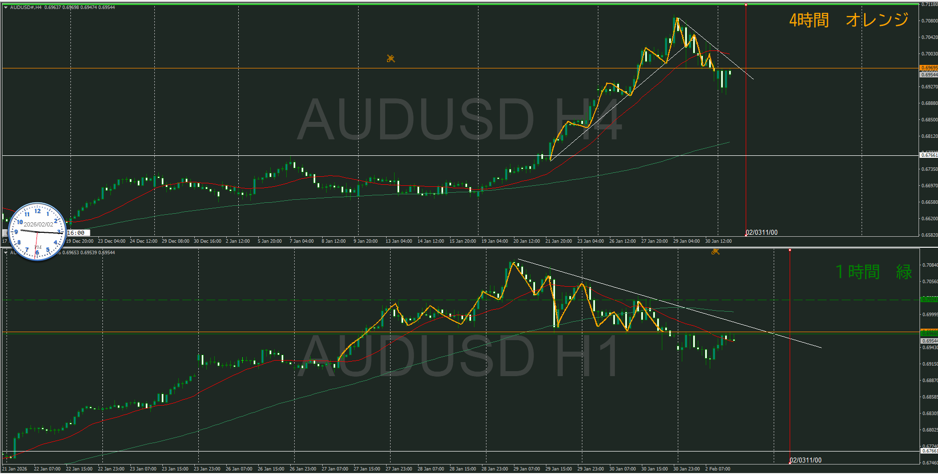 4時間の水平線の位置が危なくなってきたが、候補が微妙に難しい