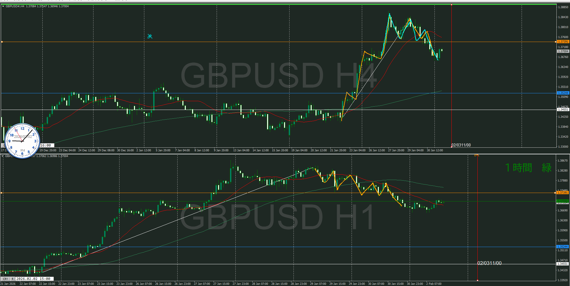 【1時間】方向上 押し過ぎている波から再度上昇 上昇の波の途中