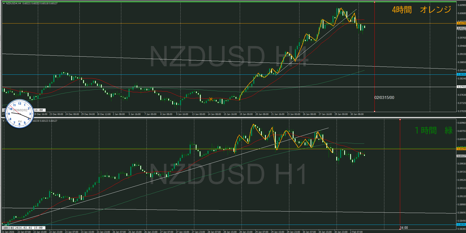 ニュジー円は1時間を張っていたので、ちょっとわからんけど、今の状況を視る限り強弱はない