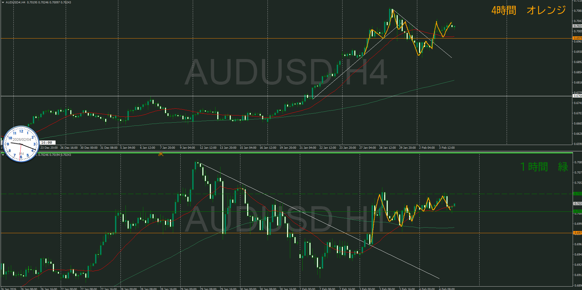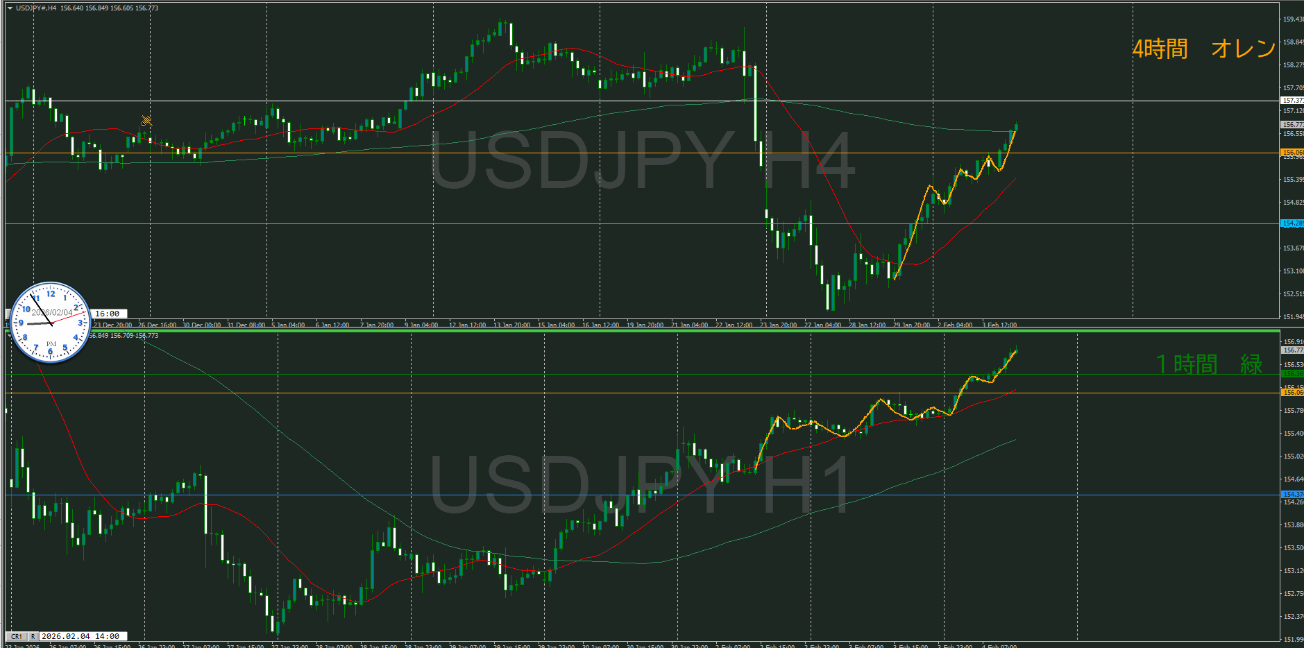 4時間MAは下を向いているけど、売り抑えられないので支障はない