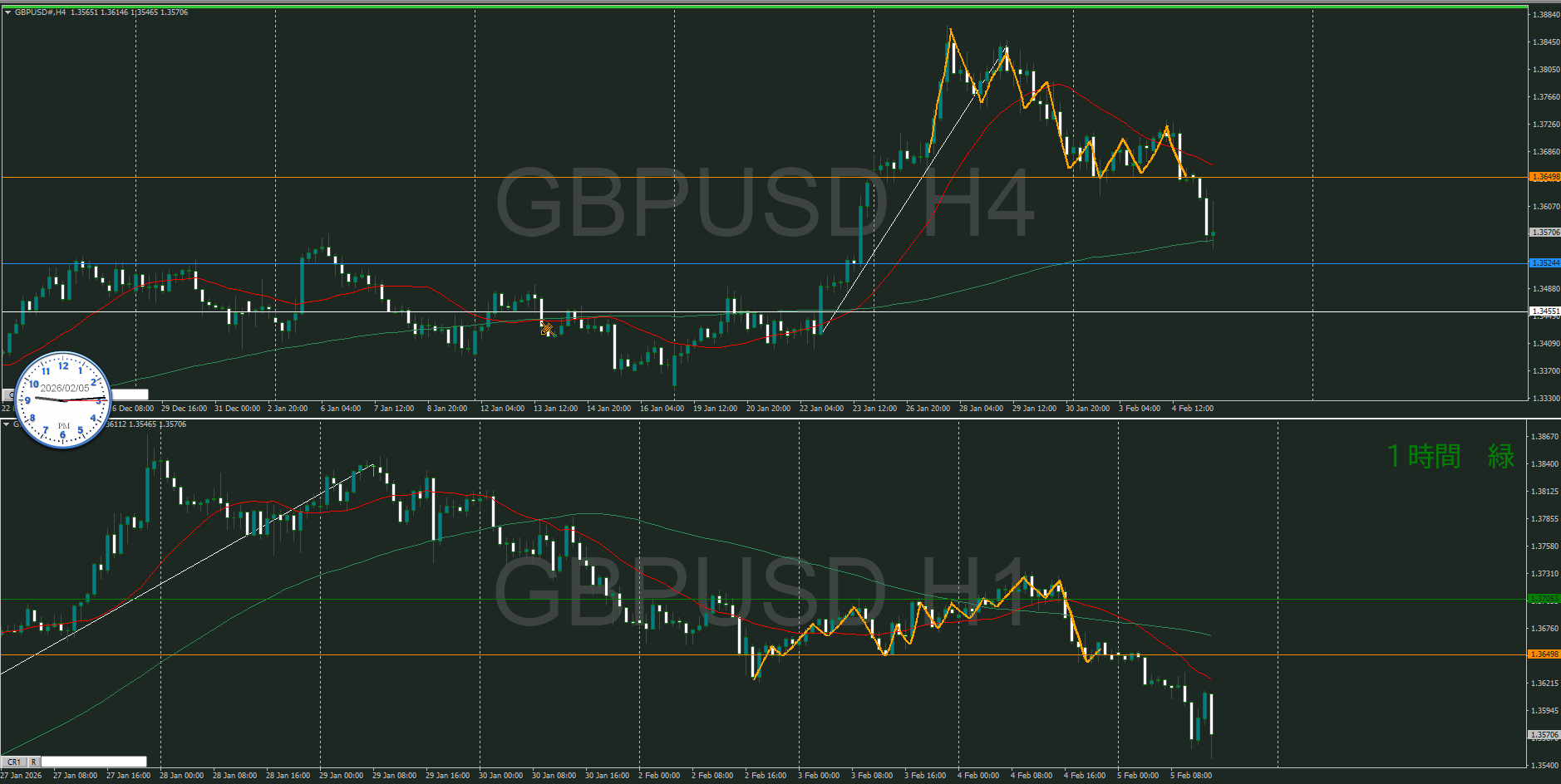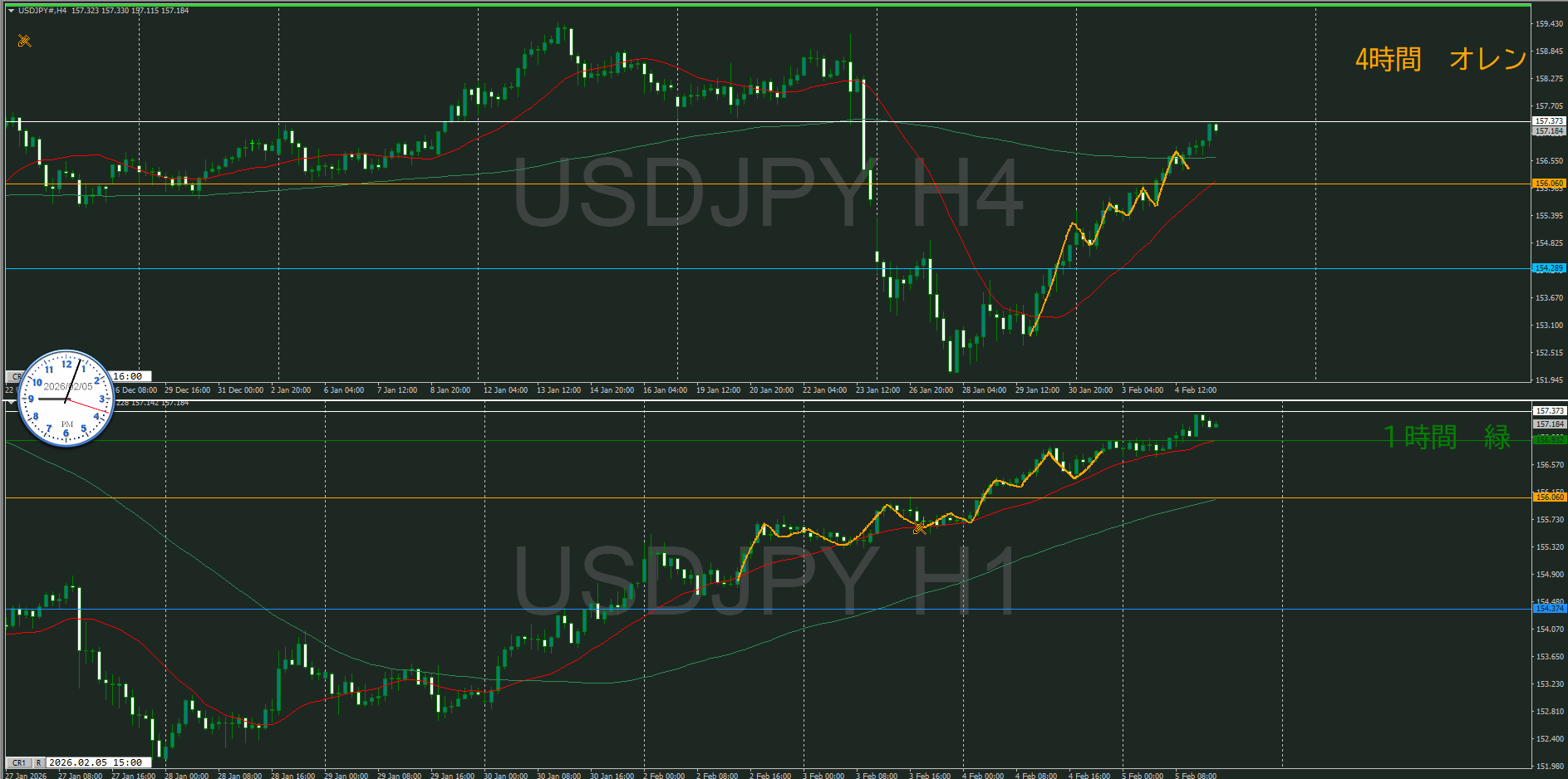 1時間の押し目買いも見えているが、4時間のMAが邪魔にならなければと思うが、無理か