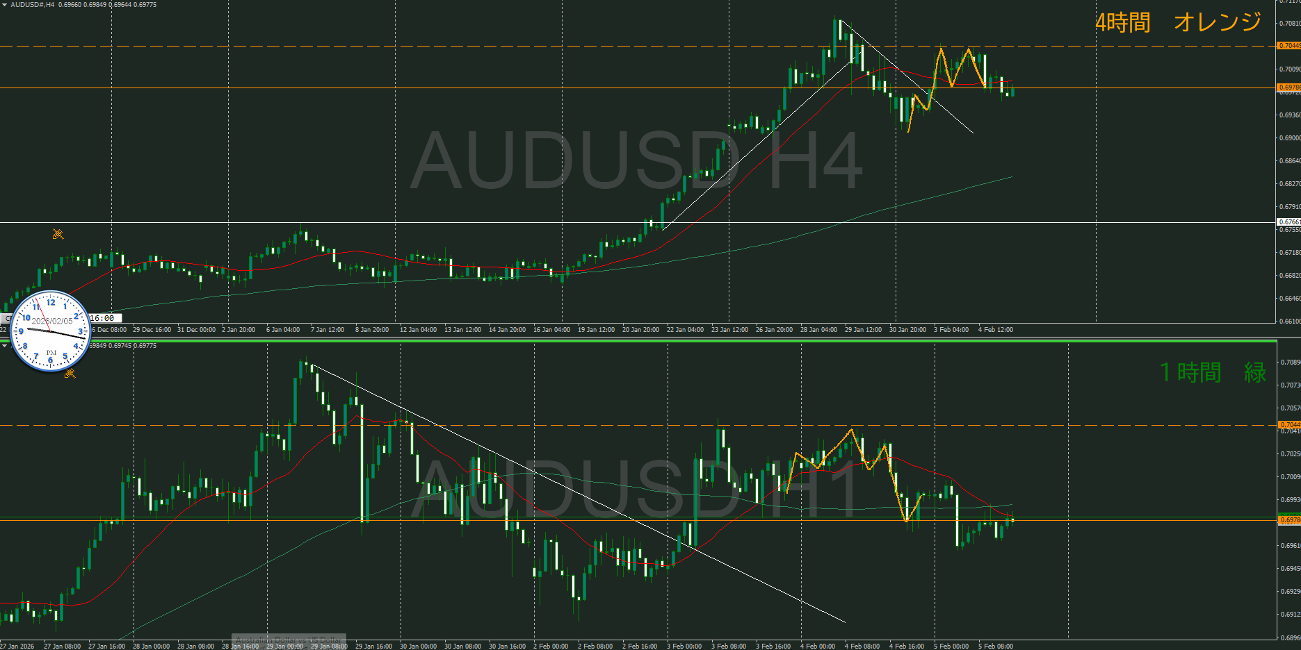 【4時間】方向上 小さいけど押しが入ったと視て上昇の波の途中