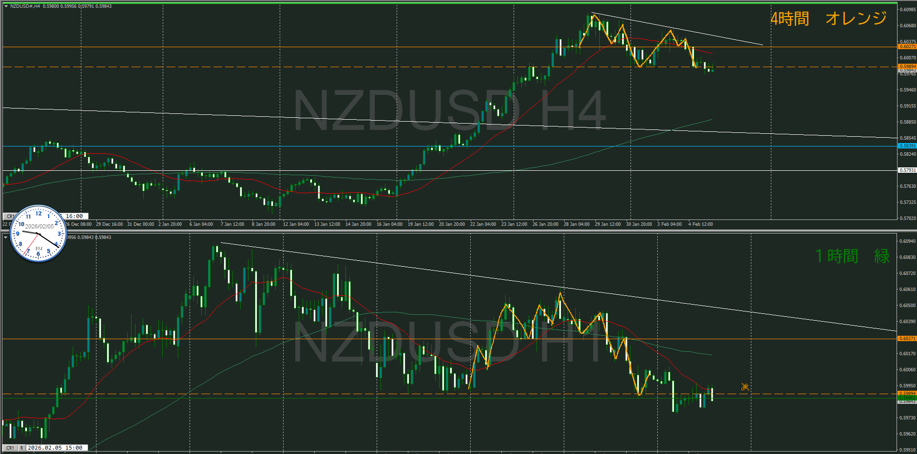 【4時間】方向下 戻り売りが入って下落の波の途中