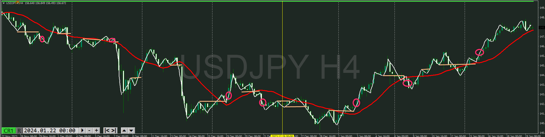 【4時間】方向下 トレンド転換シグナルが出たところ