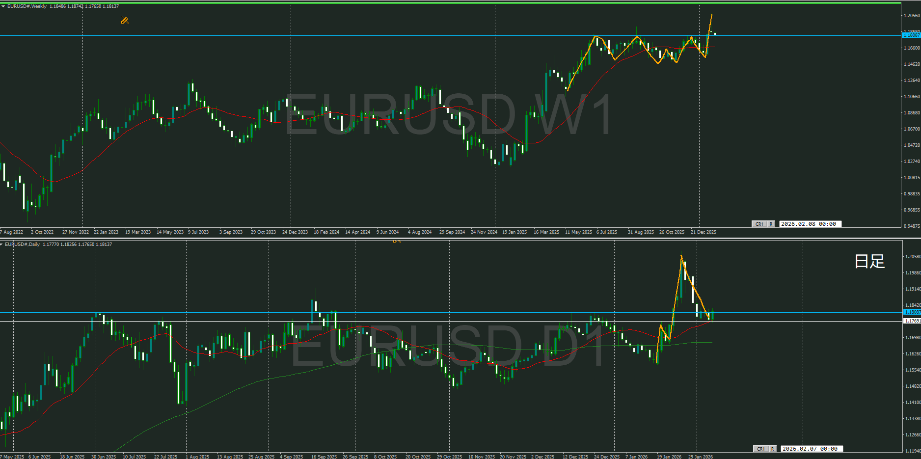週足の高値には堅い何かが居るが、日足の買いの勢いは止まれているのかが焦点