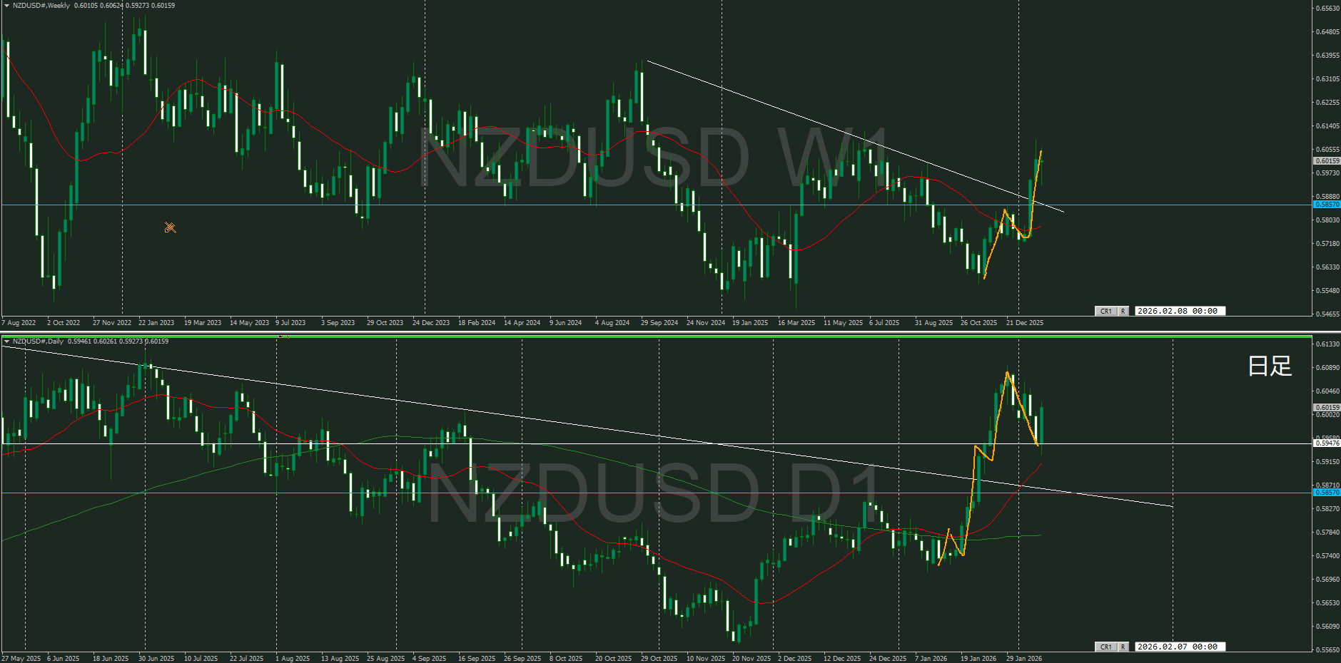 【日足】方向上 押し目買いエリアに到達