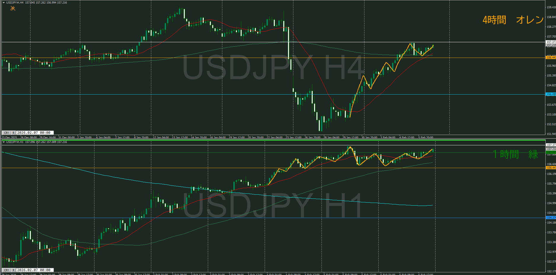 【1時間】方向上 押し目買いが入っているのか止められているのか