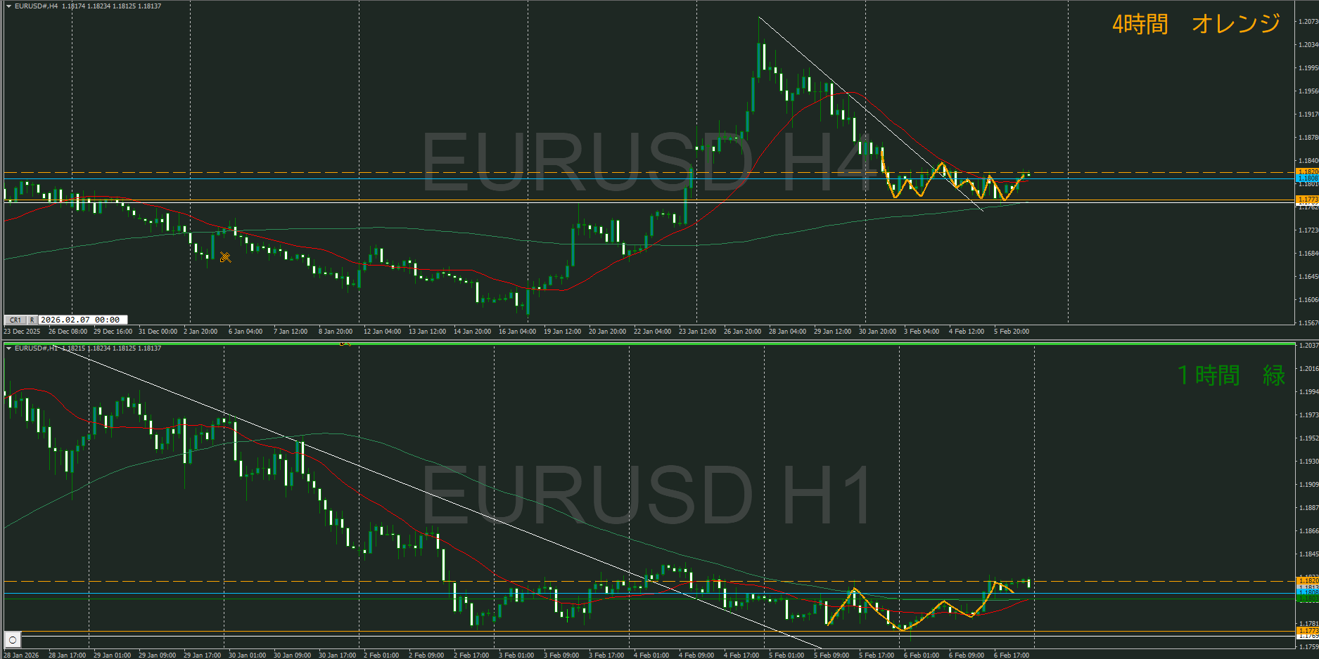 【4時間】方向下 戻している波の途中