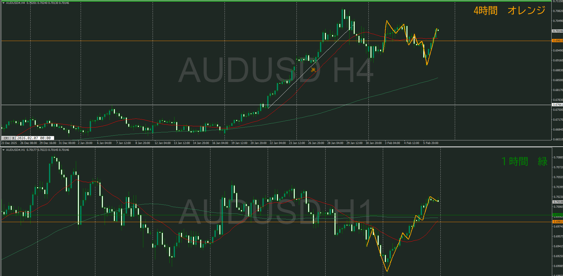 【1時間】方向上 トレンド転換シグナルが出て上昇の波の途中