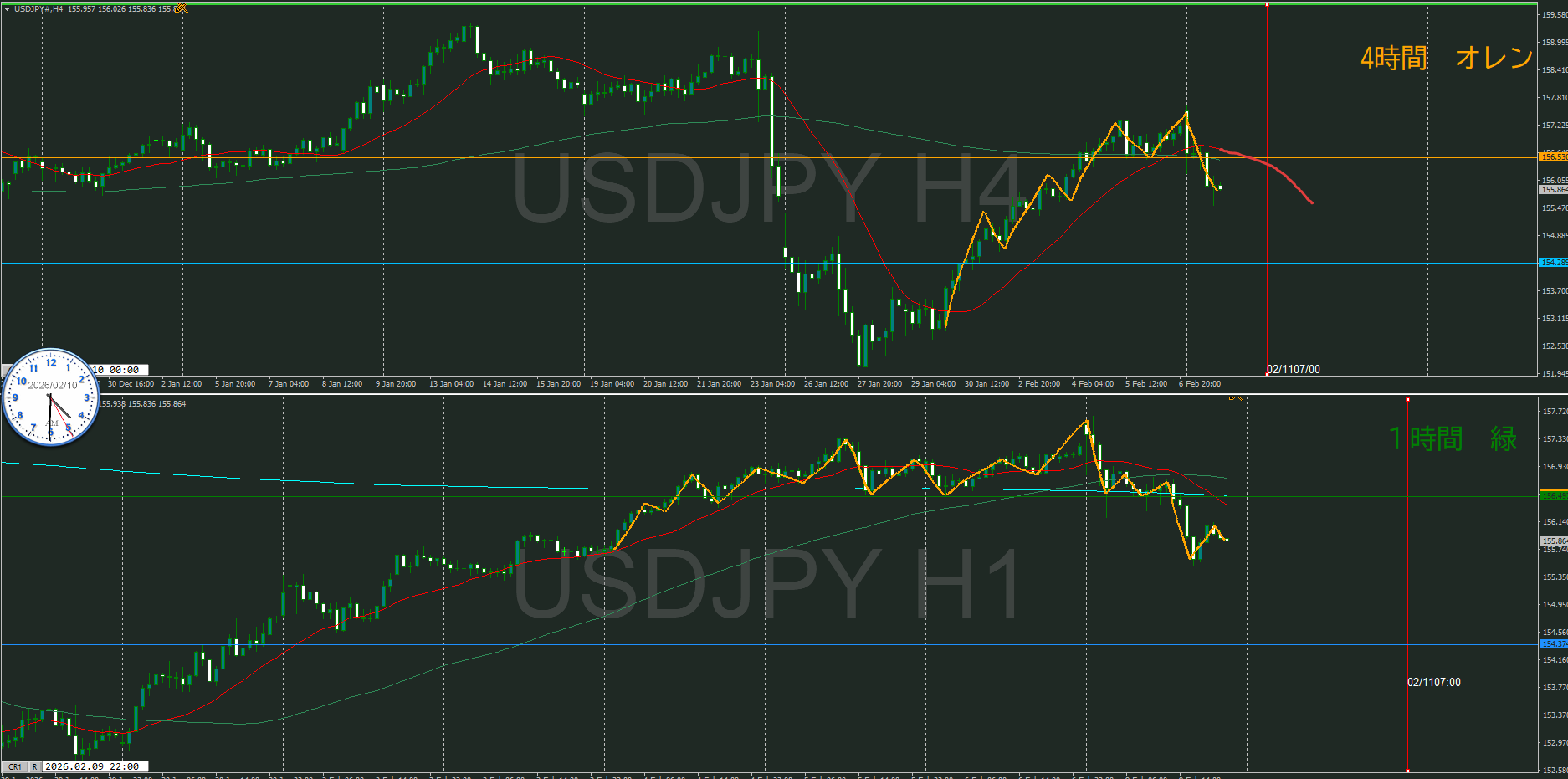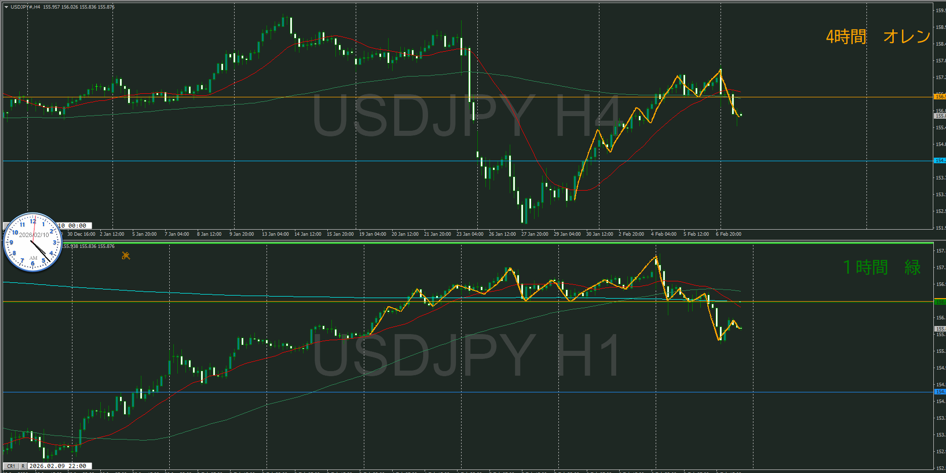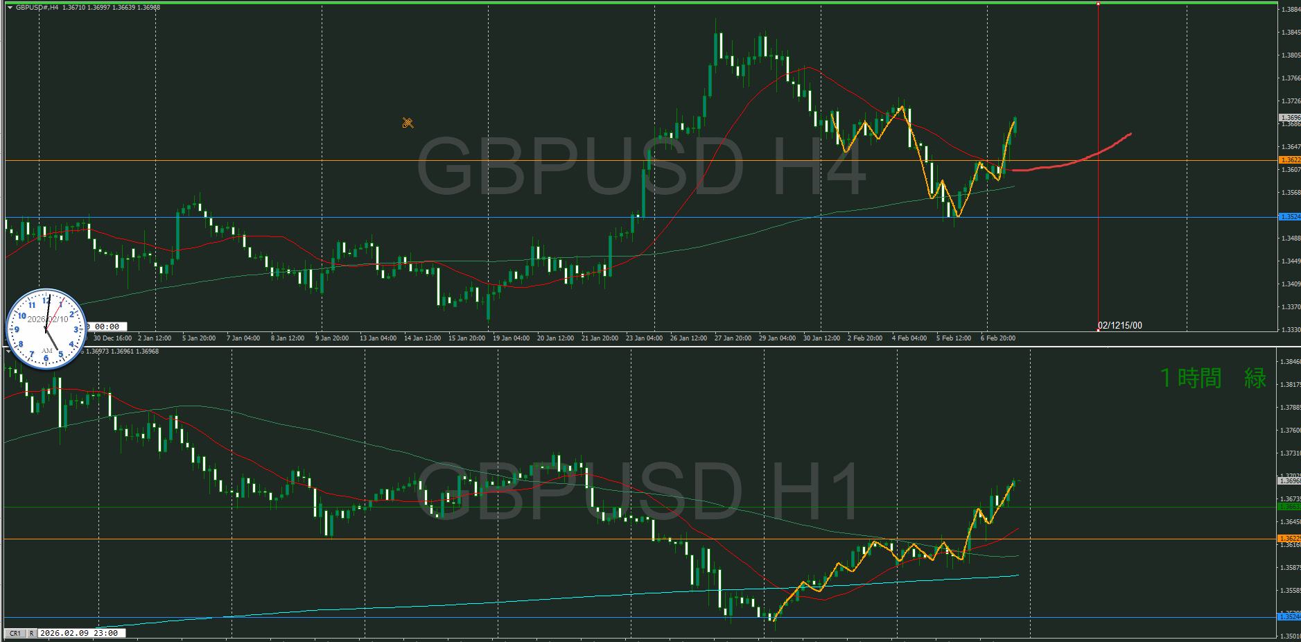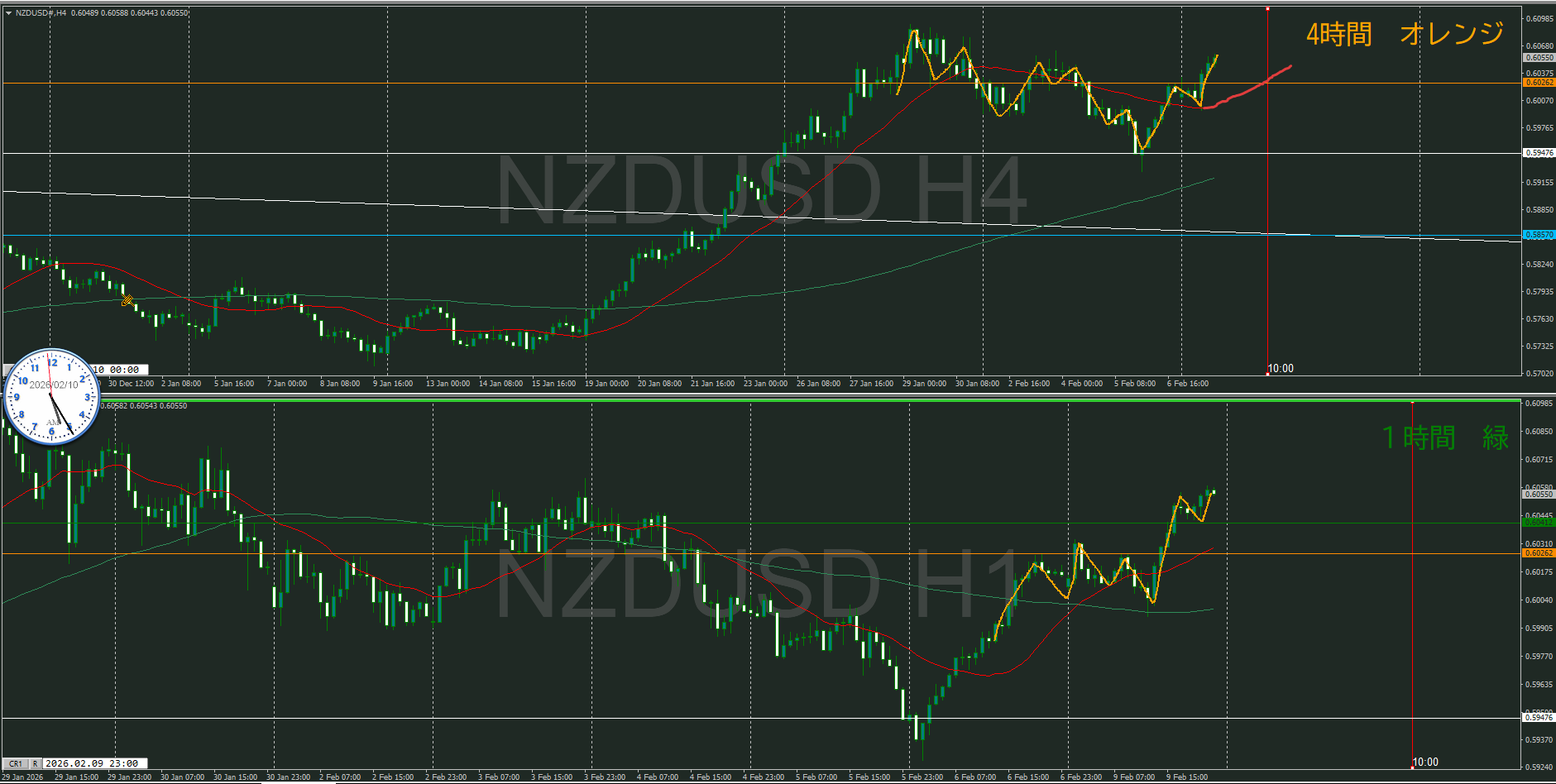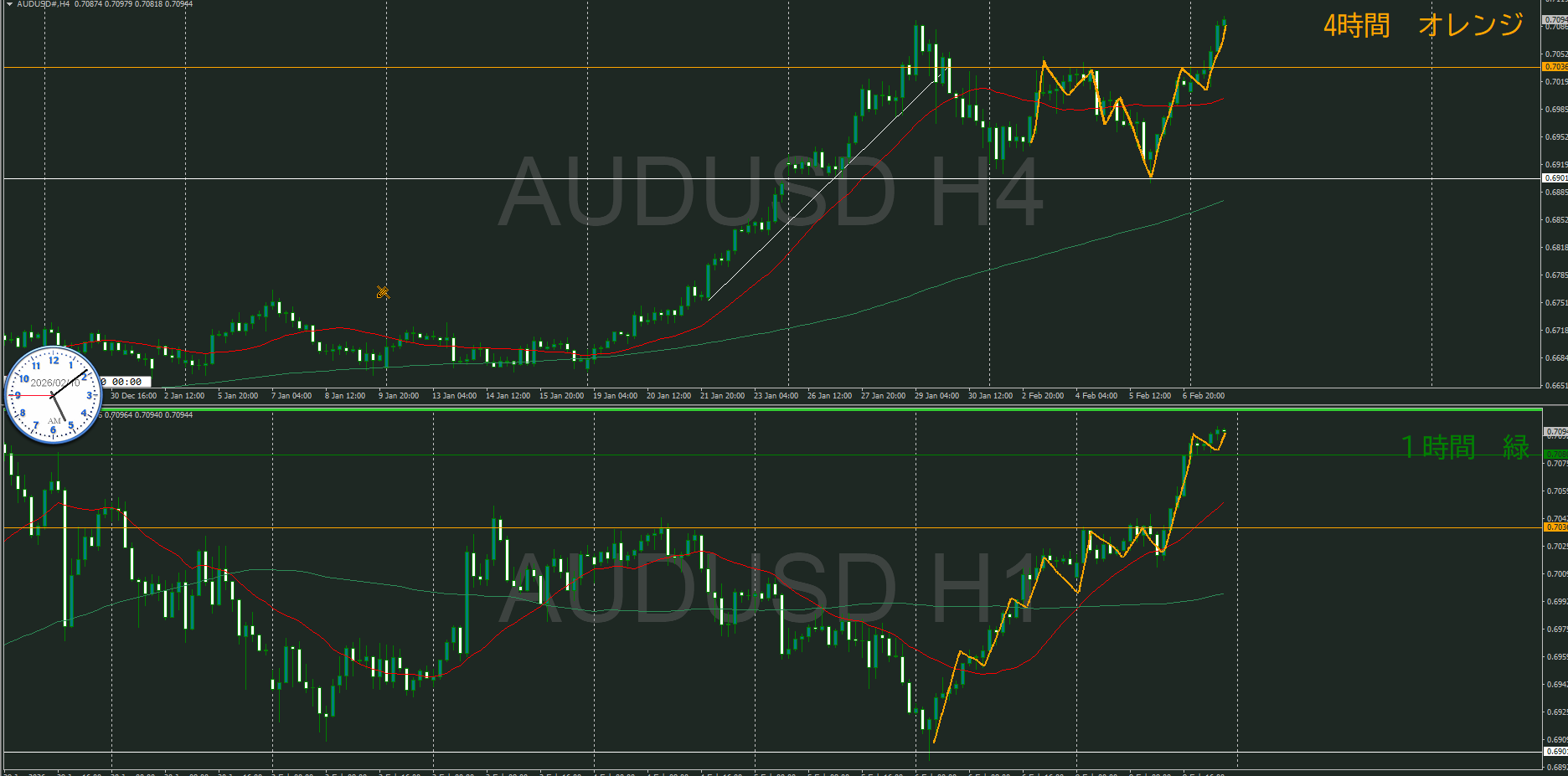 【4時間】方向上 押しを付けて上昇の波の途中