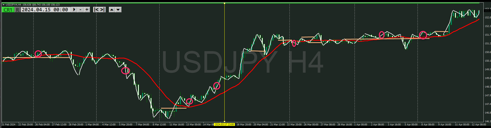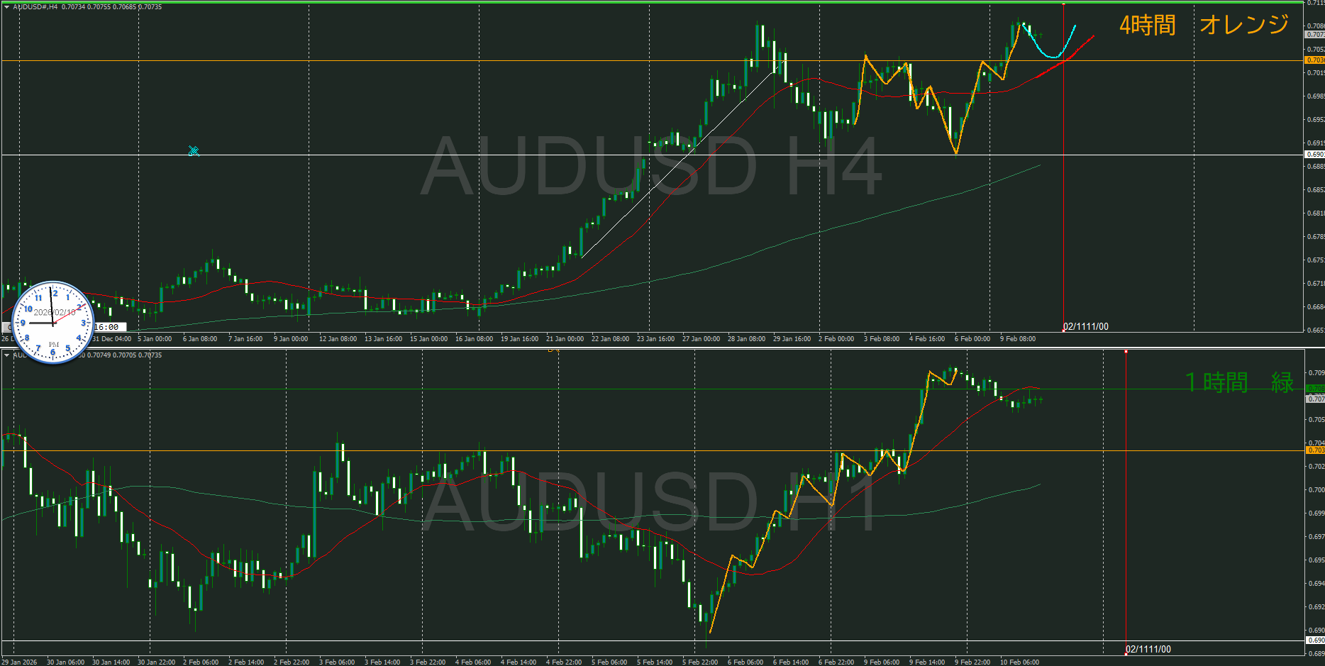 【4時間】方向上 トレンドが継続して上昇の波の途中