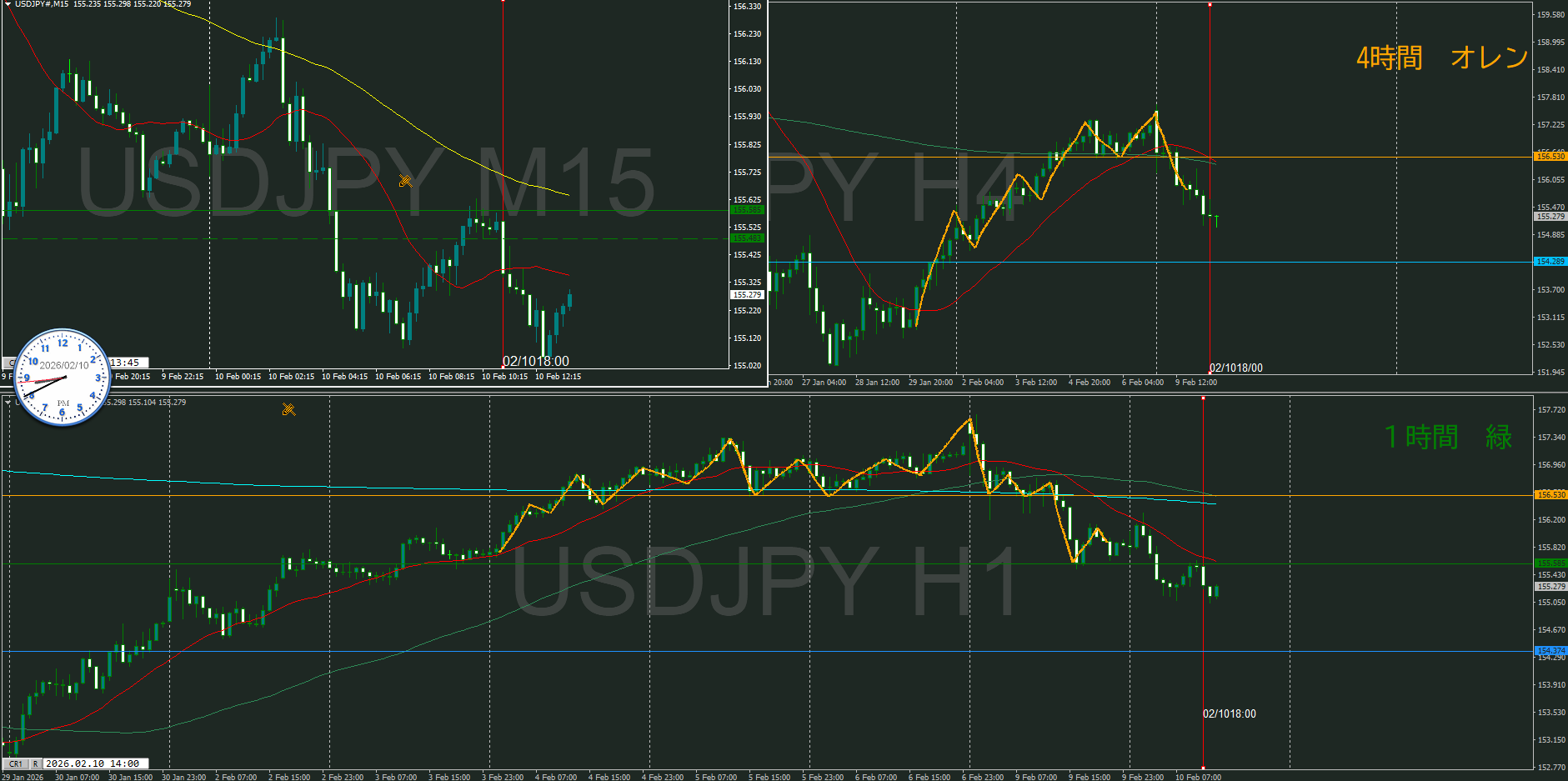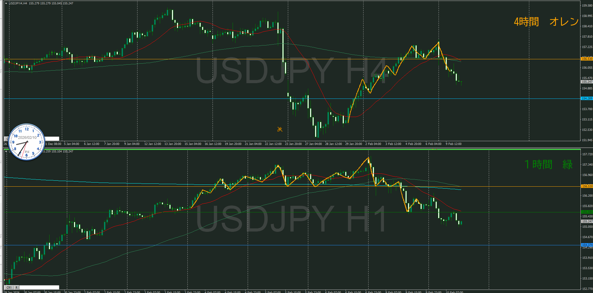 ドル円 4時間 戻らなかった なら1時間は やっぱりダメか