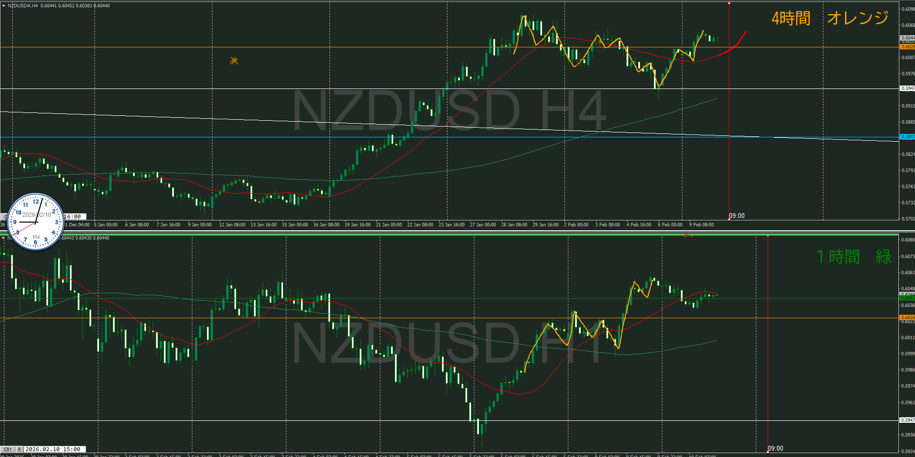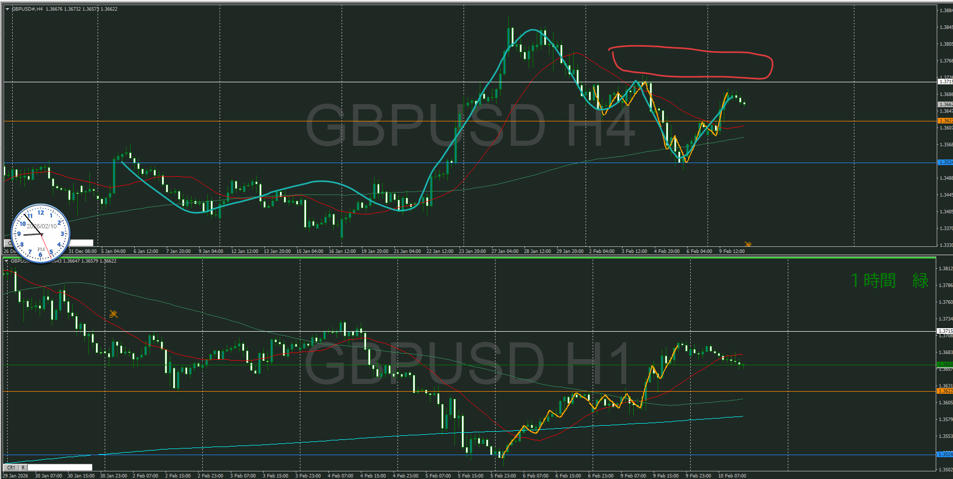 4時間のMAを参考に考察すると、明日の朝ぐらいに戻り売りエリアに到達している可能性がある