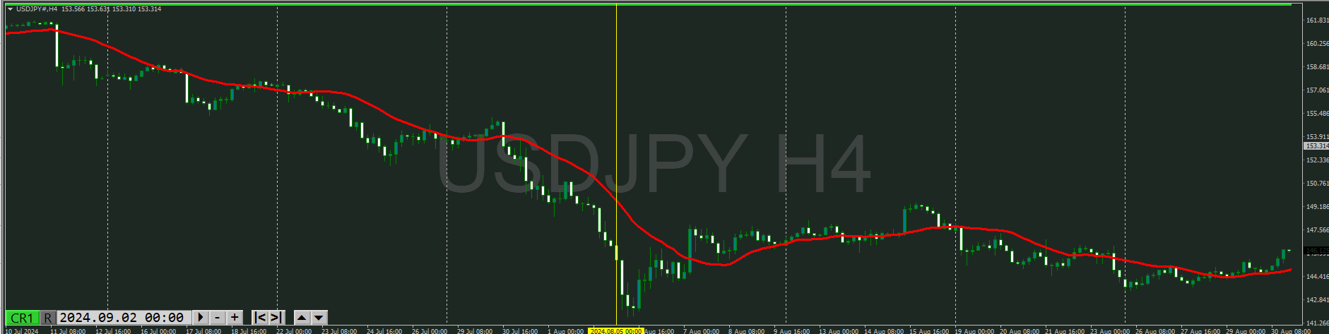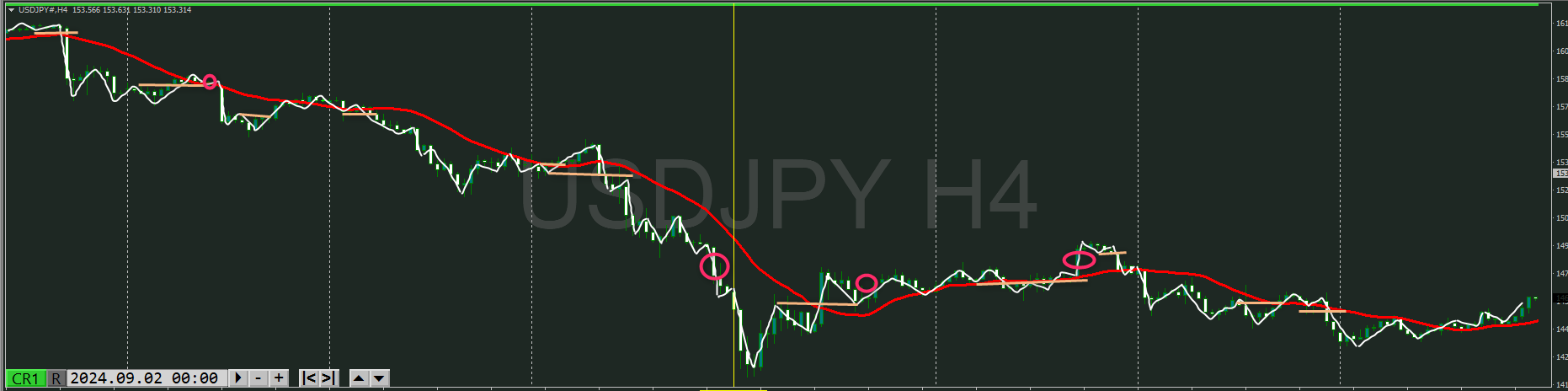 日足が止まりはめてきた様子が4時間で視える