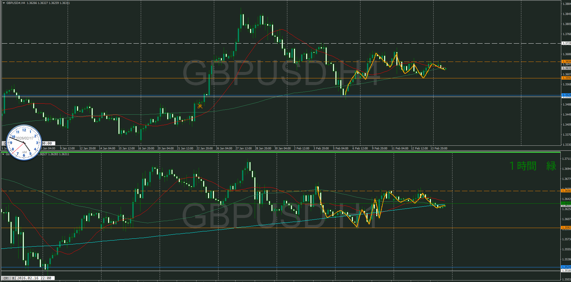 4時間MAはレートに潜ってきたので、そろそろ上に抜ける可能性あり