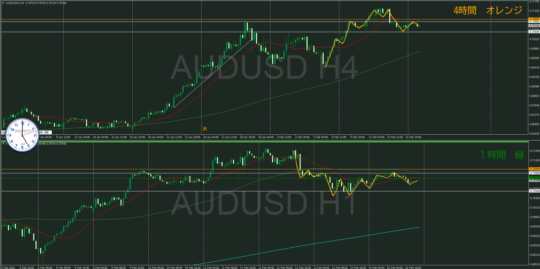 日足が明確ではない中で、4時間が調整中
