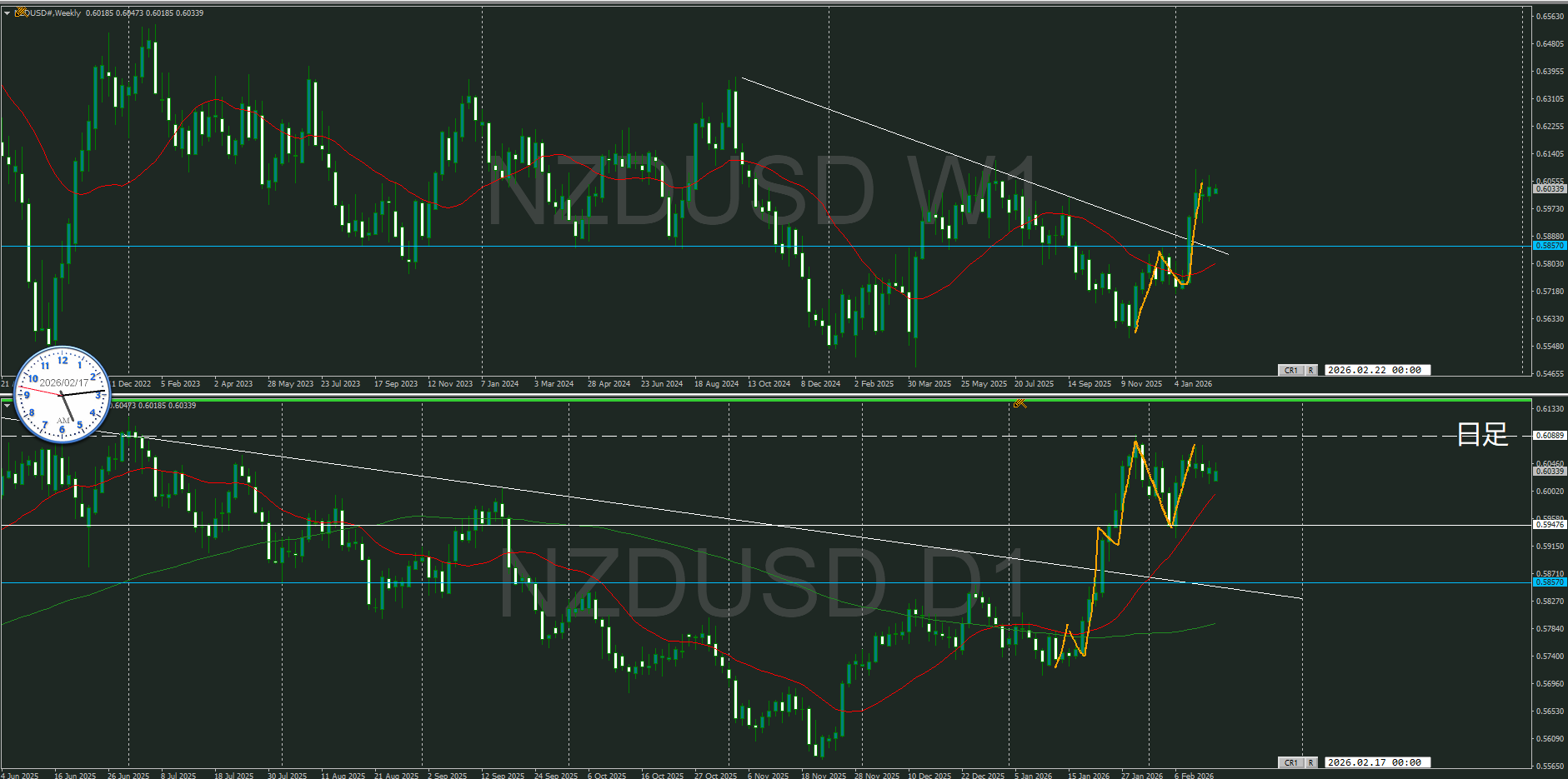 テクニカル的には日足が反転してくるのかが焦点