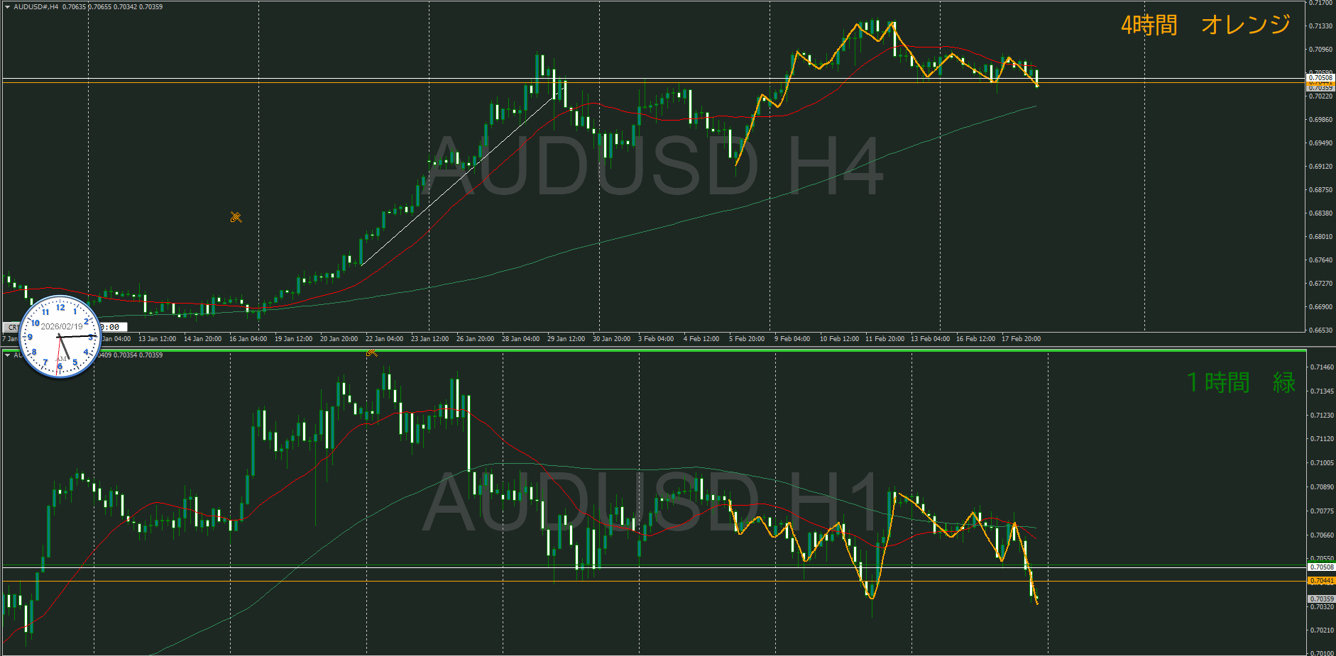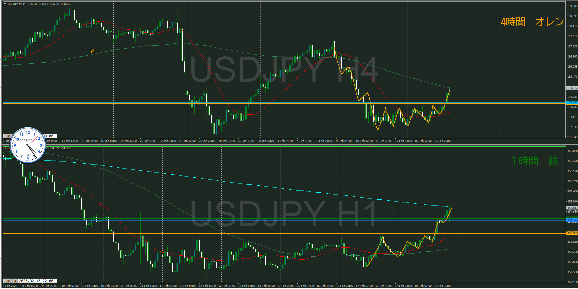 【4時間】方向上 調整を上に抜けて上昇の波の途中