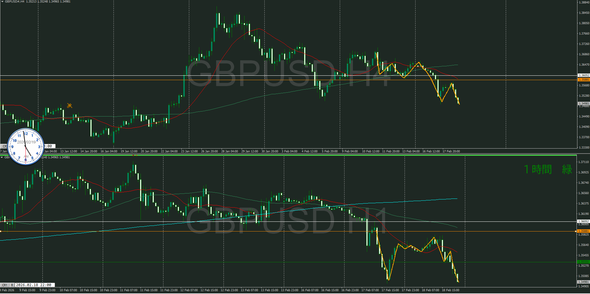 【1時間】方向下 下落トレンドが継続し下落の波の途中