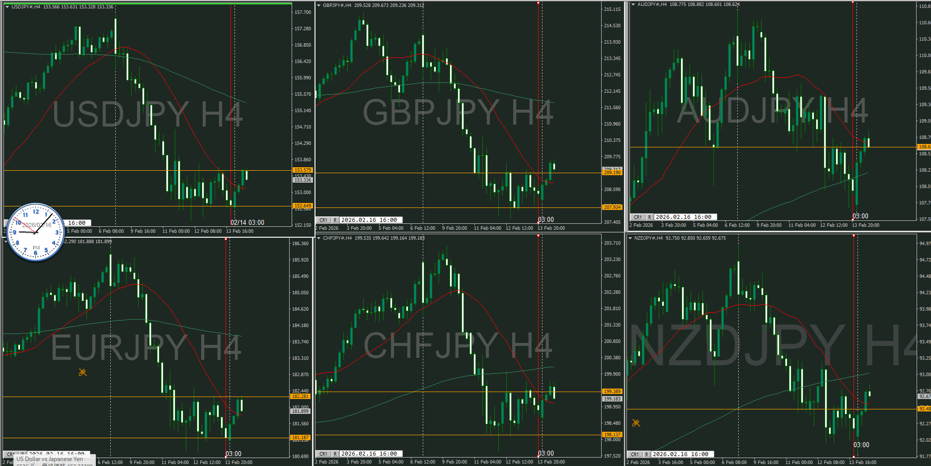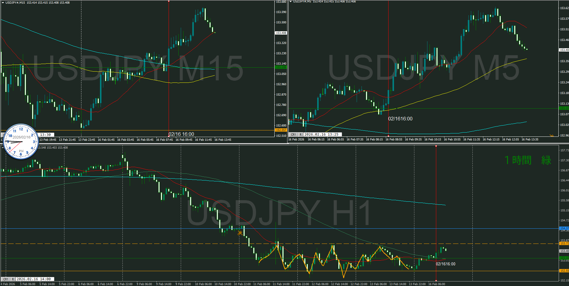 テクニカル的には、日足・4時間・1時間のMAが収束してきている