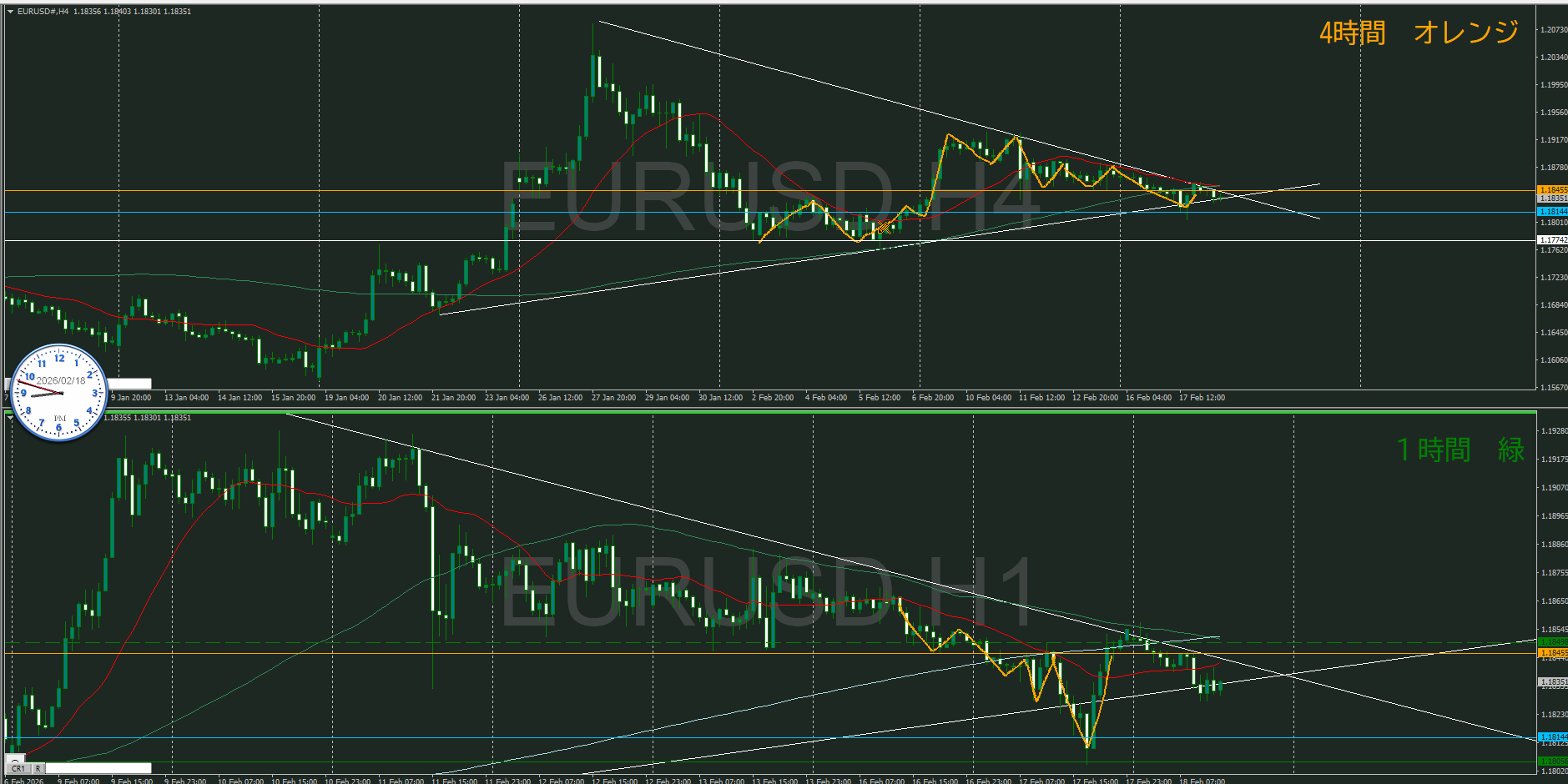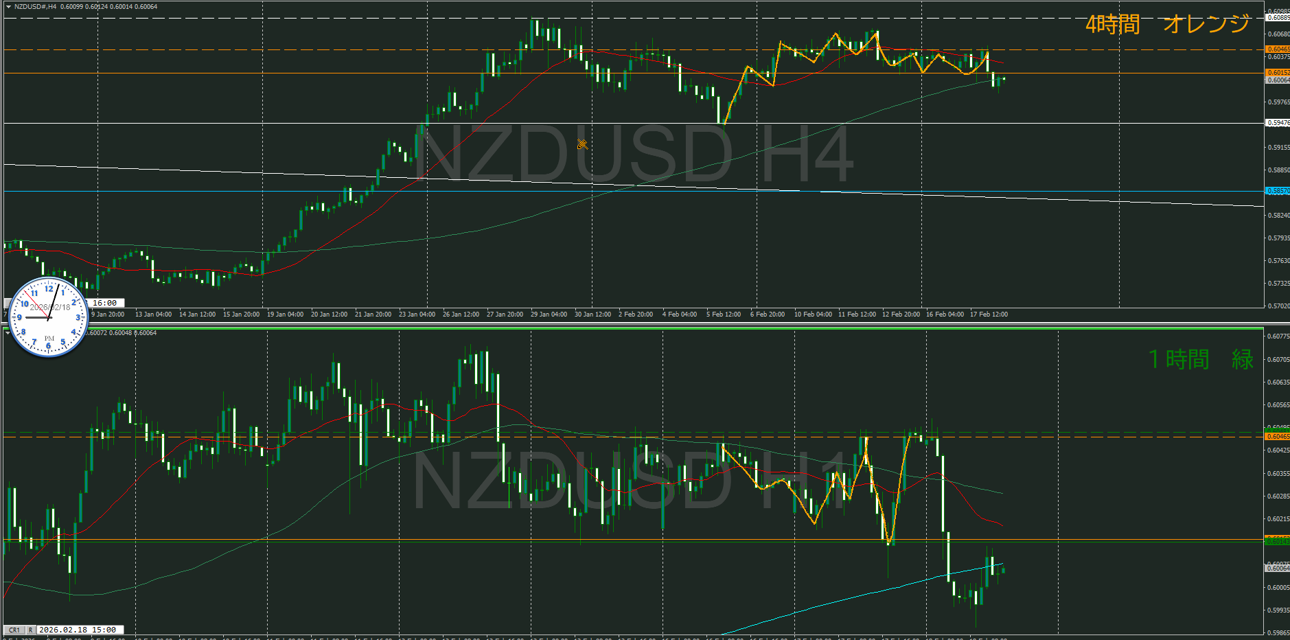 【4時間】方向下 間延びした波だけの戻している波の途中