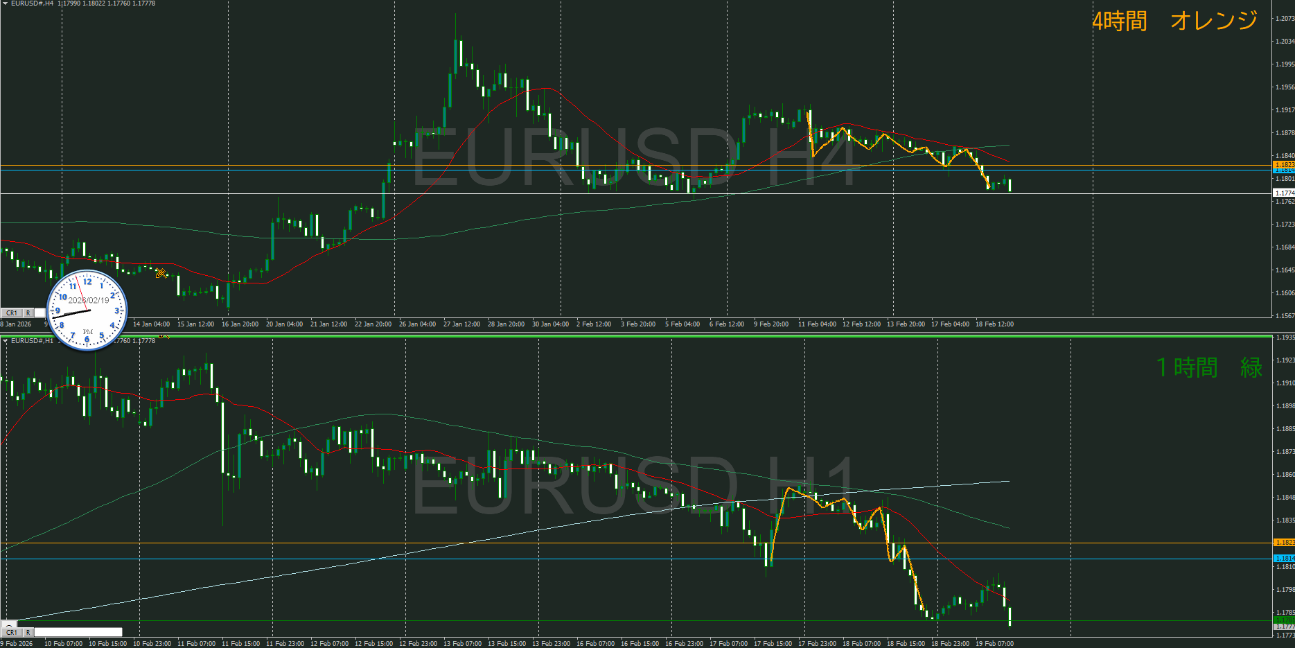 【4時間】方向下 戻り売りが入って安値付近まで到達