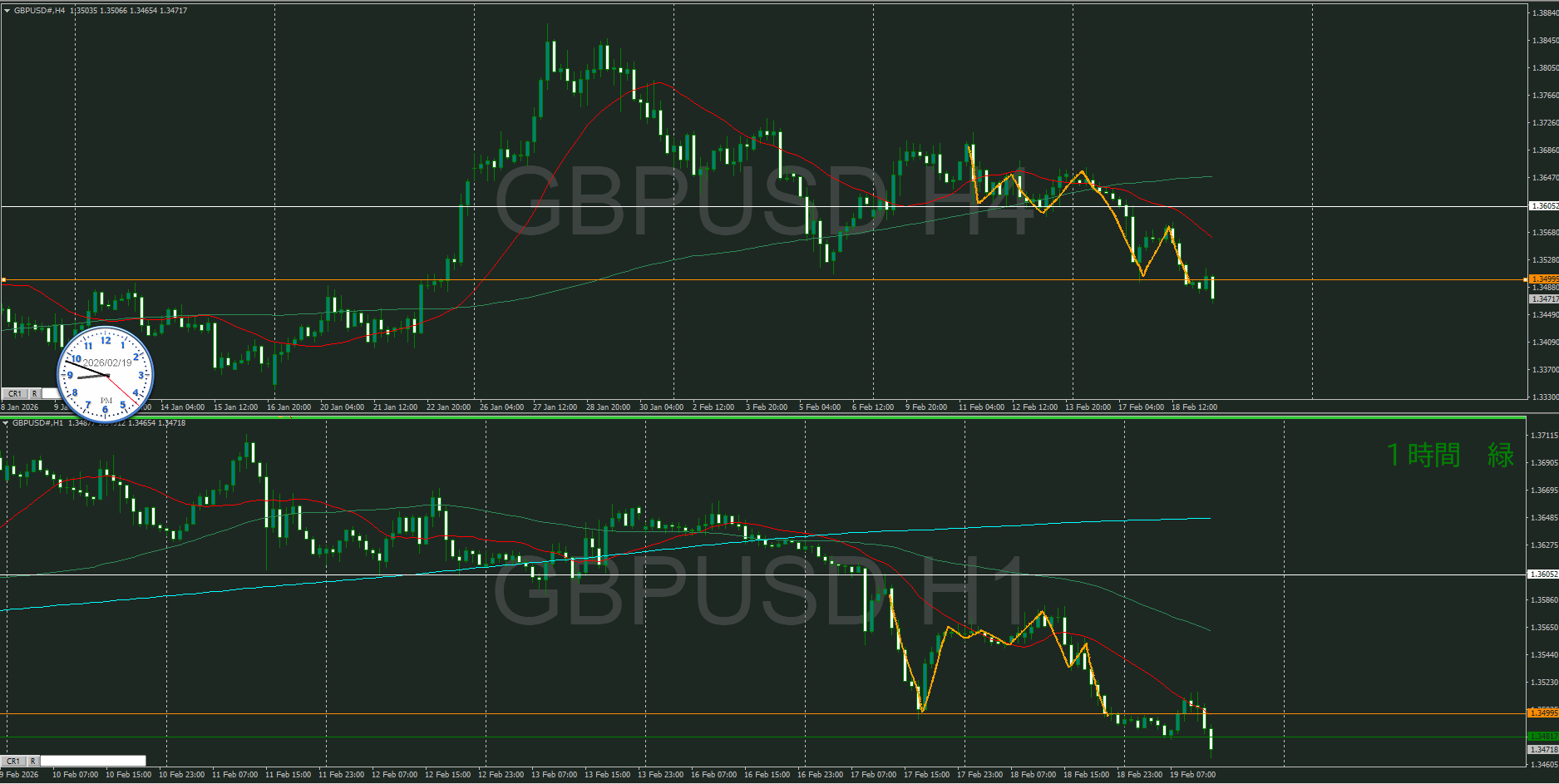 【1時間】方向下 下落トレンドが継続し下落の波の途中
