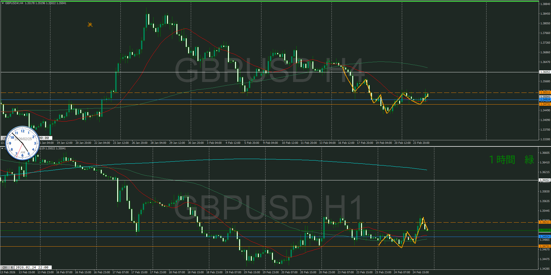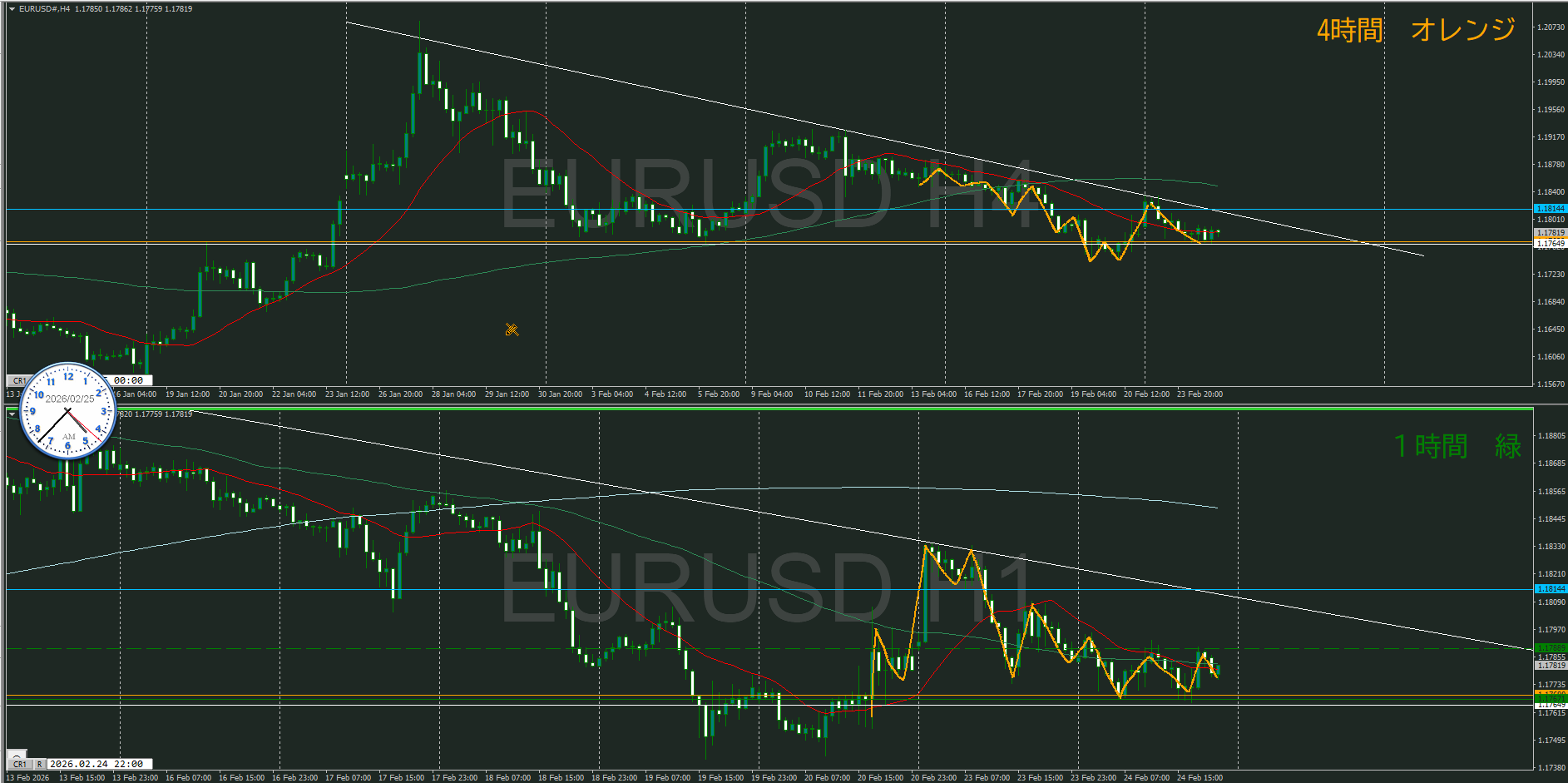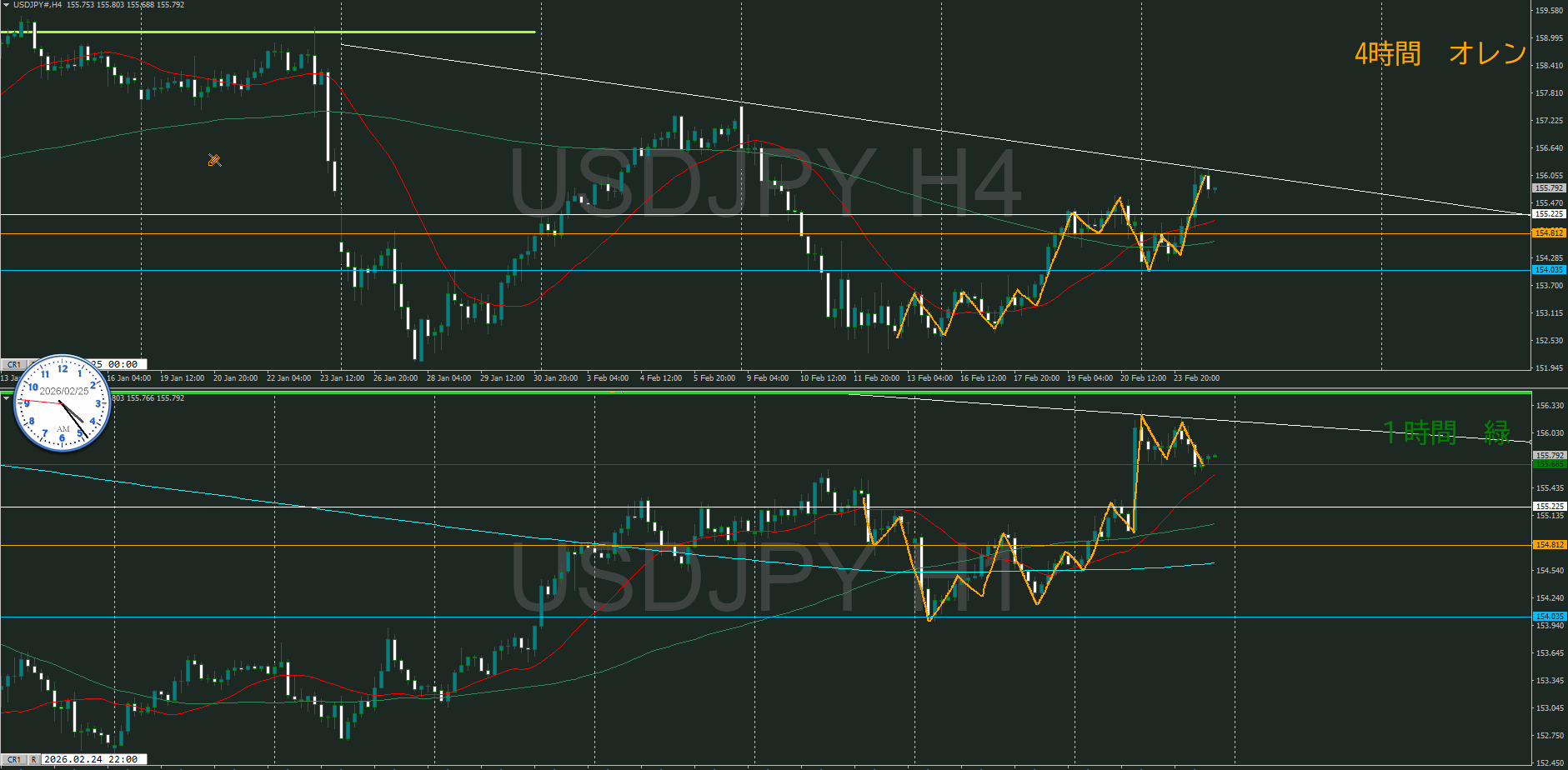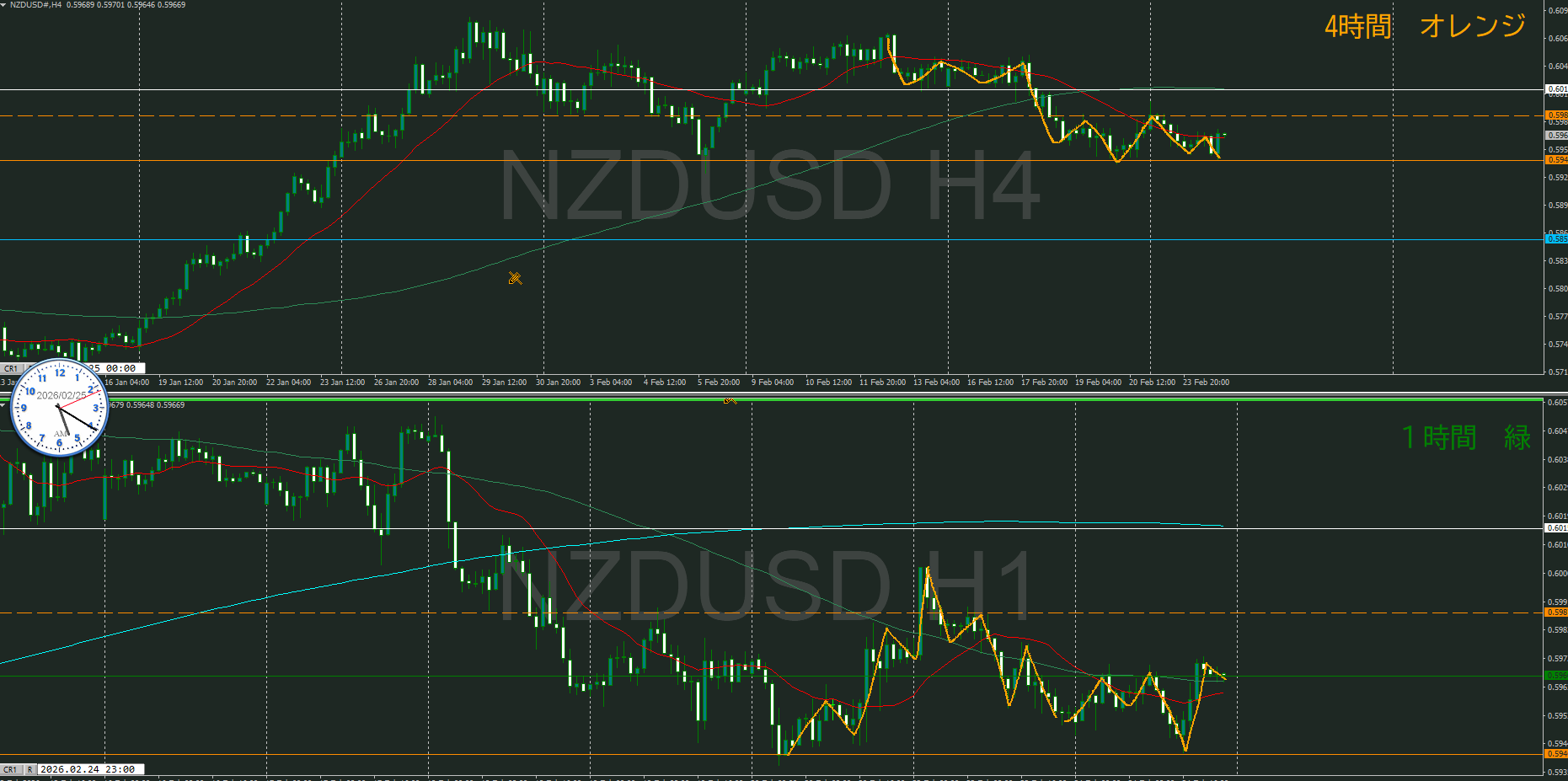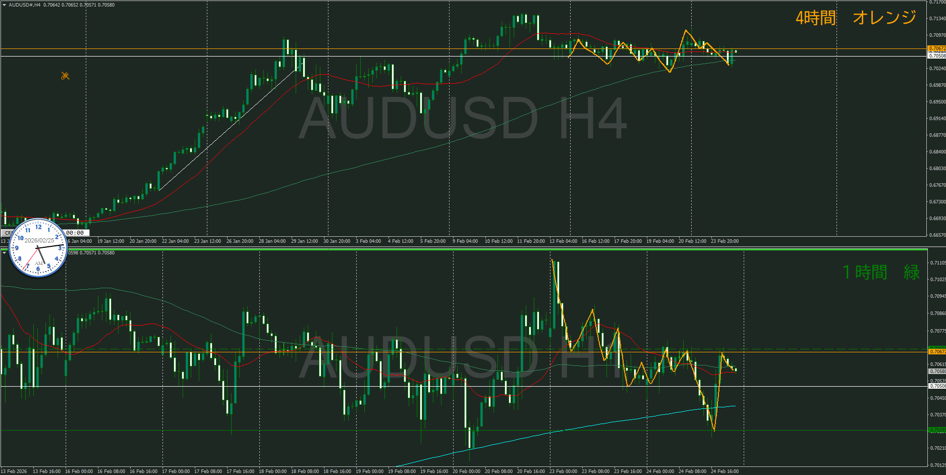 【1時間】方向上 押し目買いエリアに到達