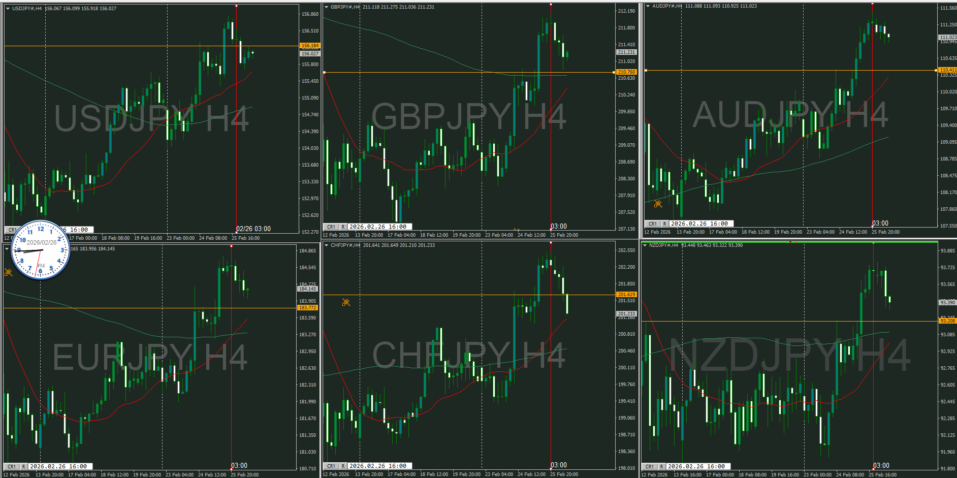 ドル円とスイスフラン円を除くとイイ感じで押している通貨が目立つ